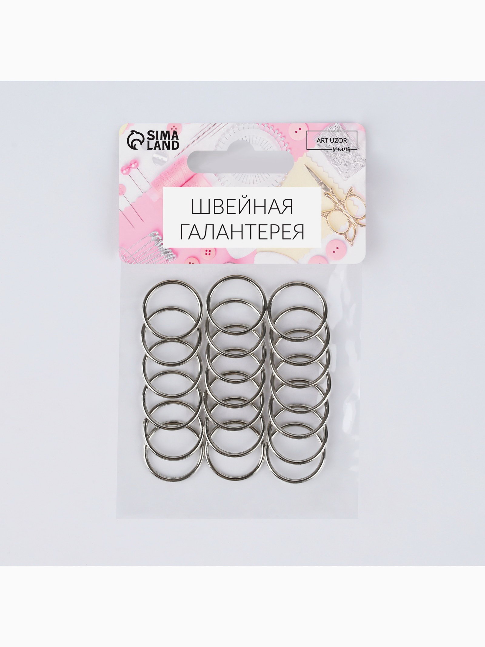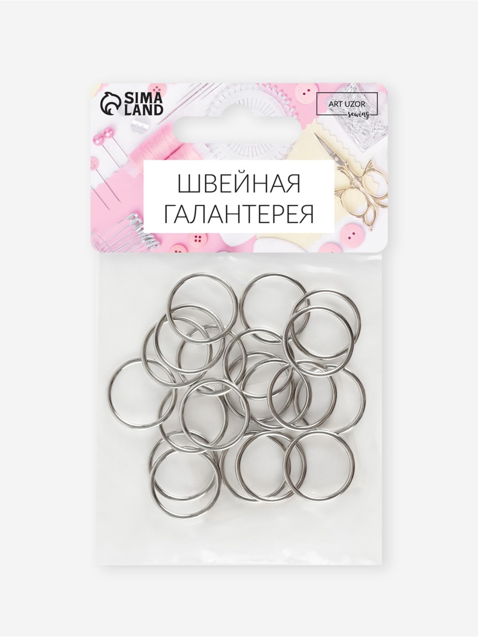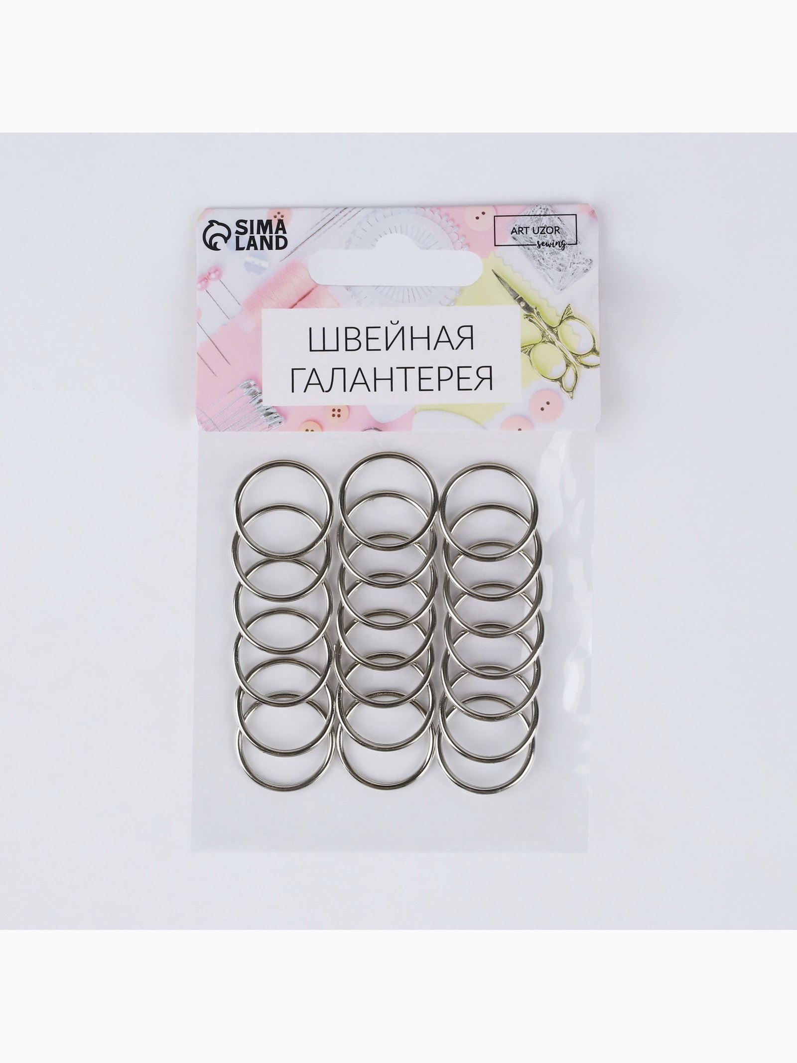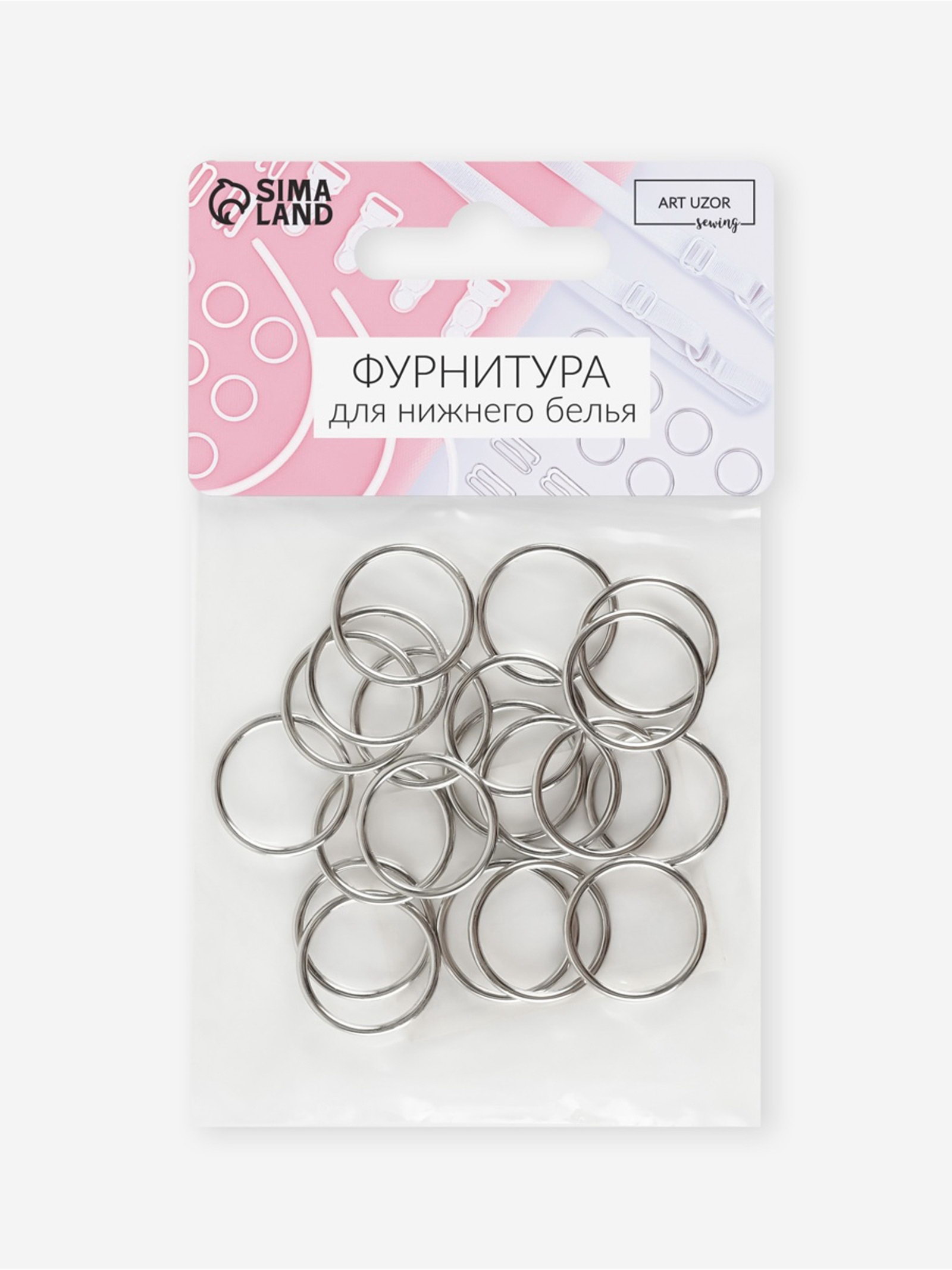 Кольцо для бретелей, металлическое, 15 мм, 20 шт., цвет серебряный, 7x10x1 см., Арт Узор, Китай
