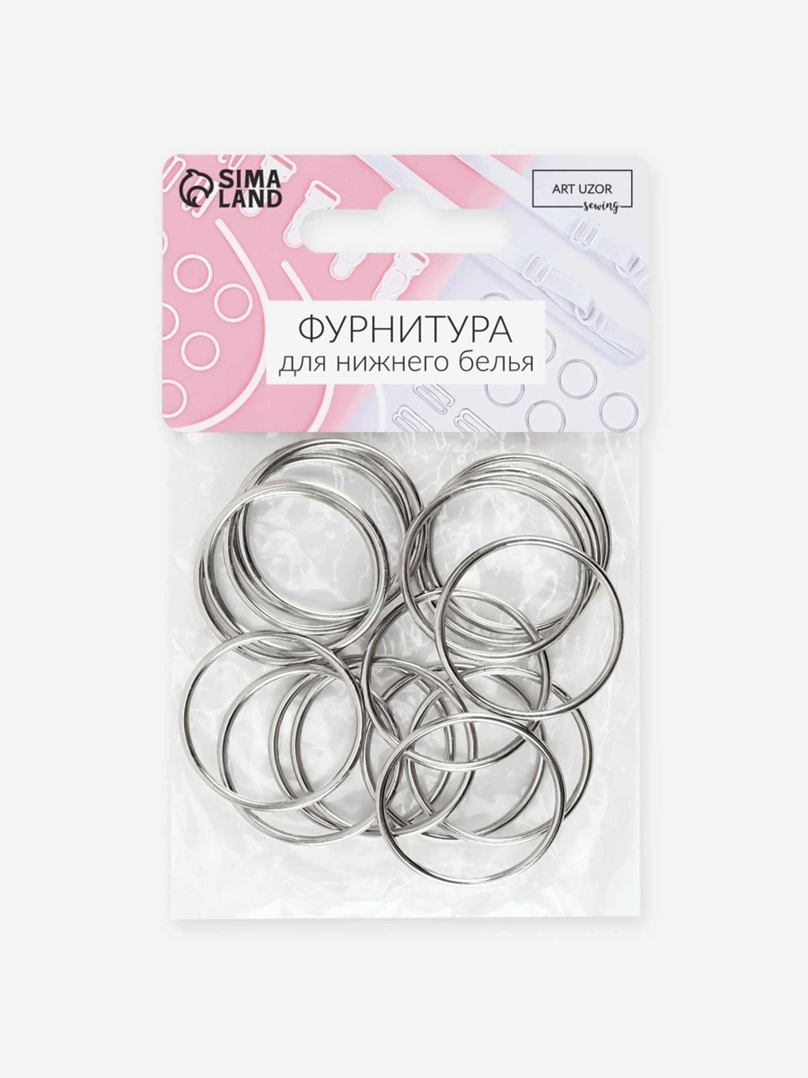 Кольцо для бретелей, металлическое, 25 мм, 20 шт., цвет серебряный, 12x15x1 см., Арт Узор, Китай