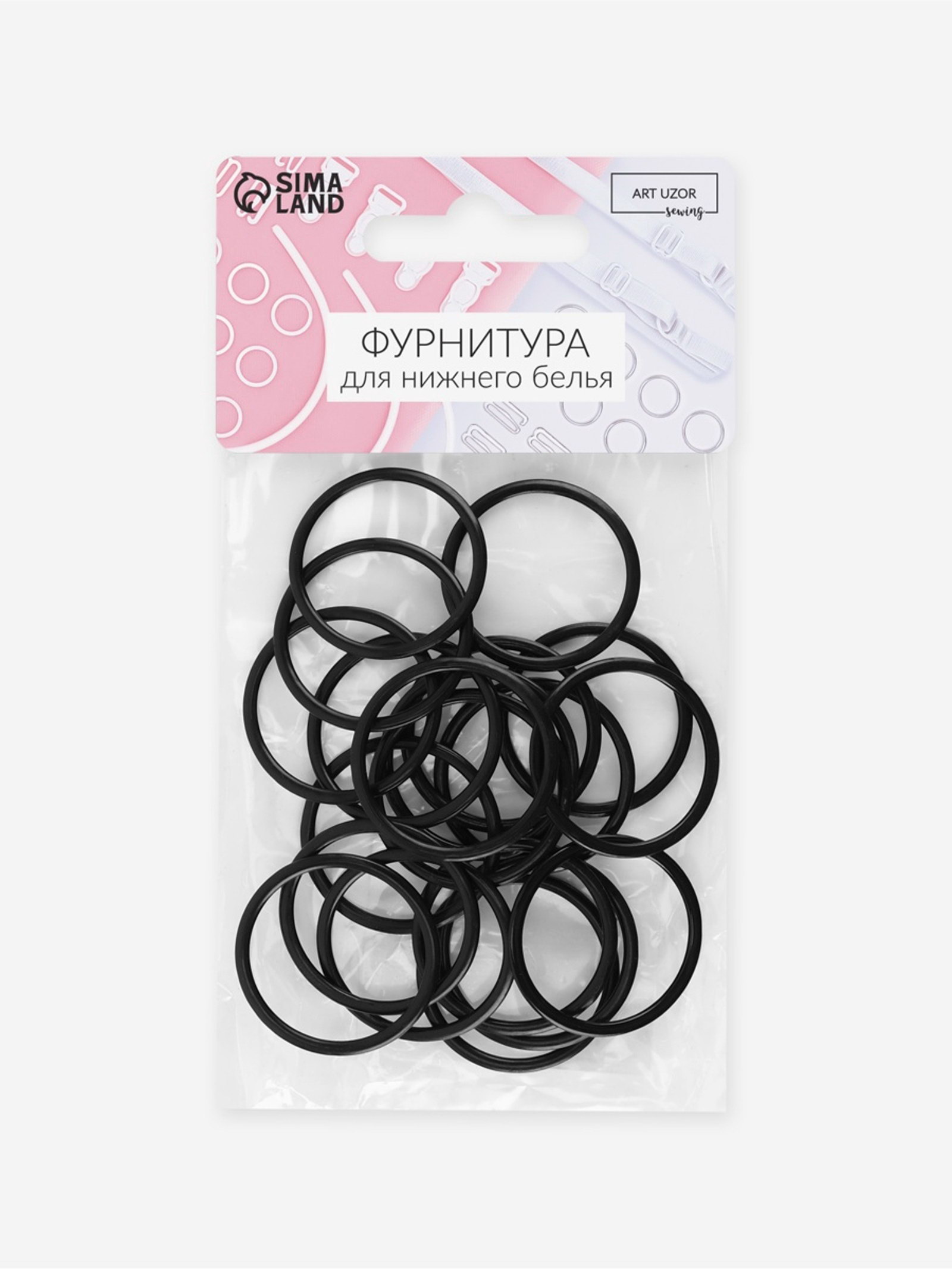 Кольцо для бретелей, металлическое, 25 мм, 20 шт., чёрное, 12x15x1 см., Арт Узор, Китай