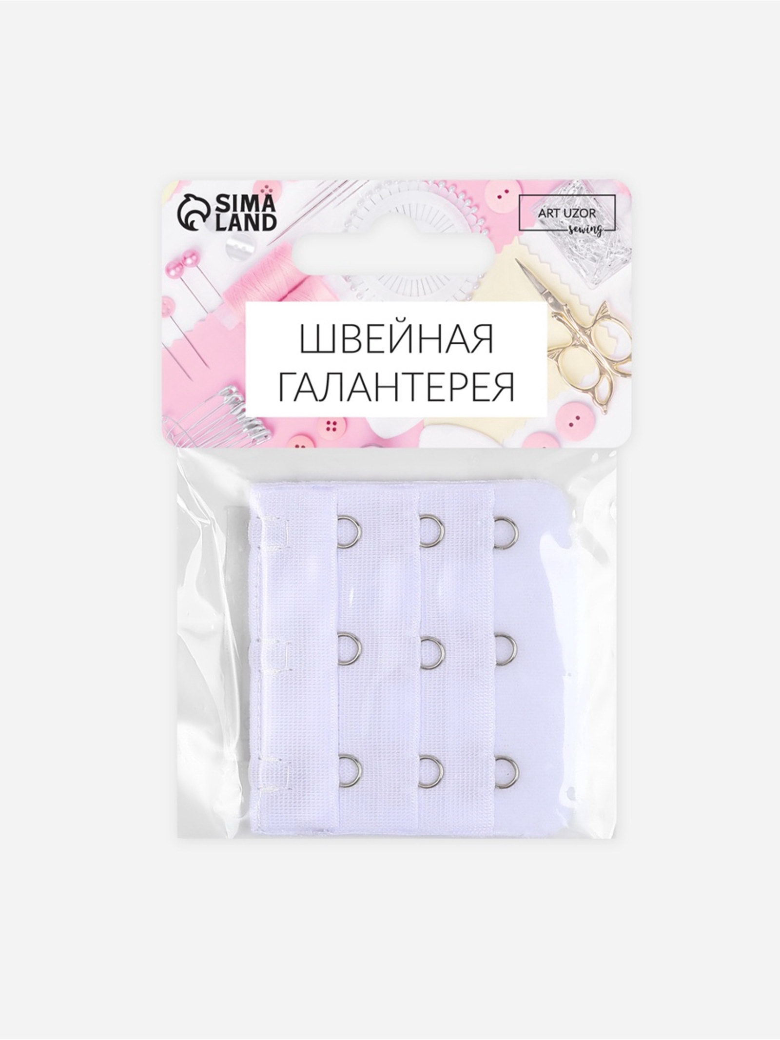 Застёжка для бюстгальтера, удлинитель, 3 ряда 3 крючка, 5x5.5 см, белая, 5x5.5x0.5 см., Арт Узор, Китай