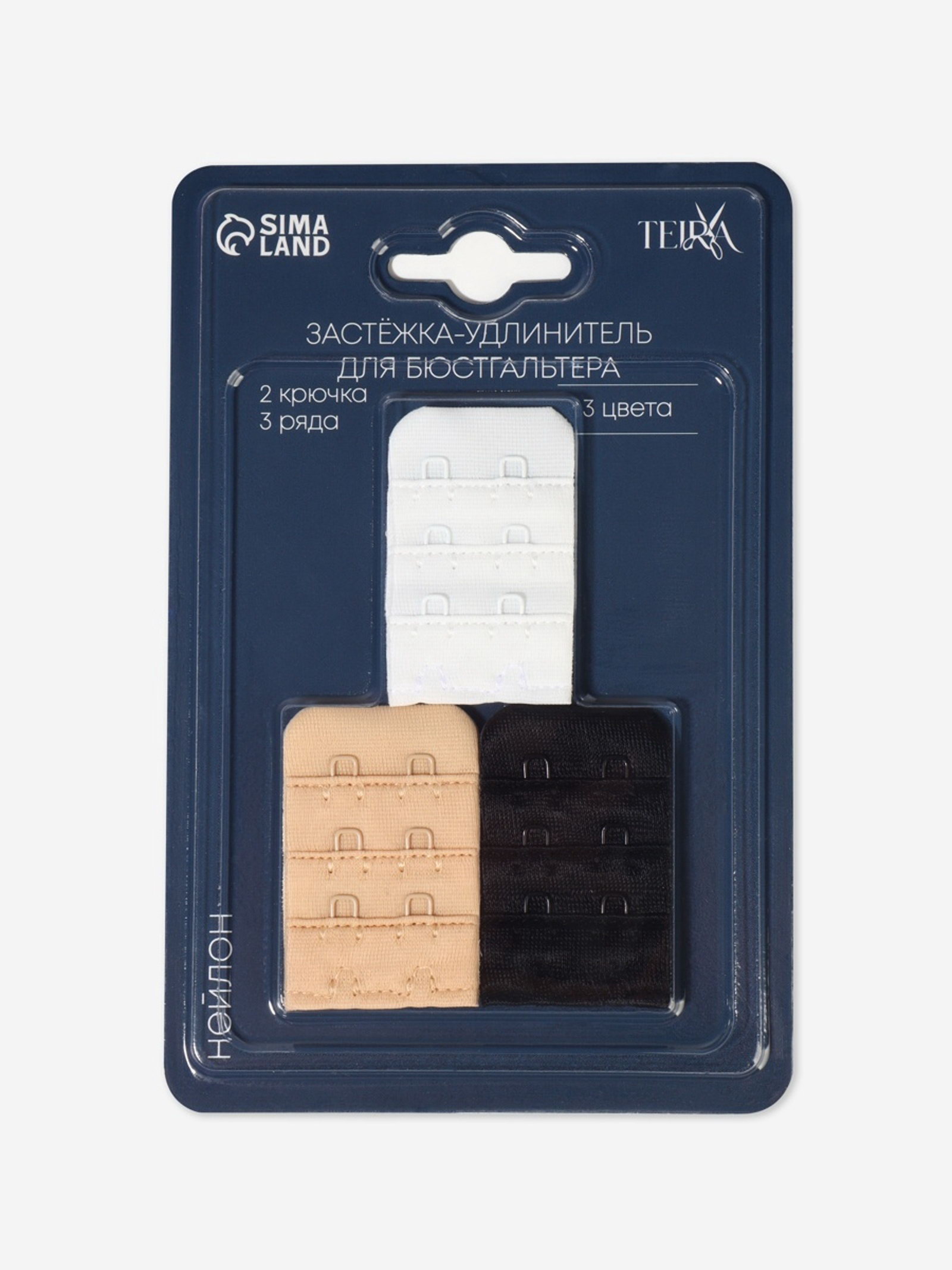 Застёжка-удлинитель для бюстгальтера 3 ряда 2 крючка, 3.2x5 см, набор 3 шт., 5x10x0.2 см., TEIRA, Китай