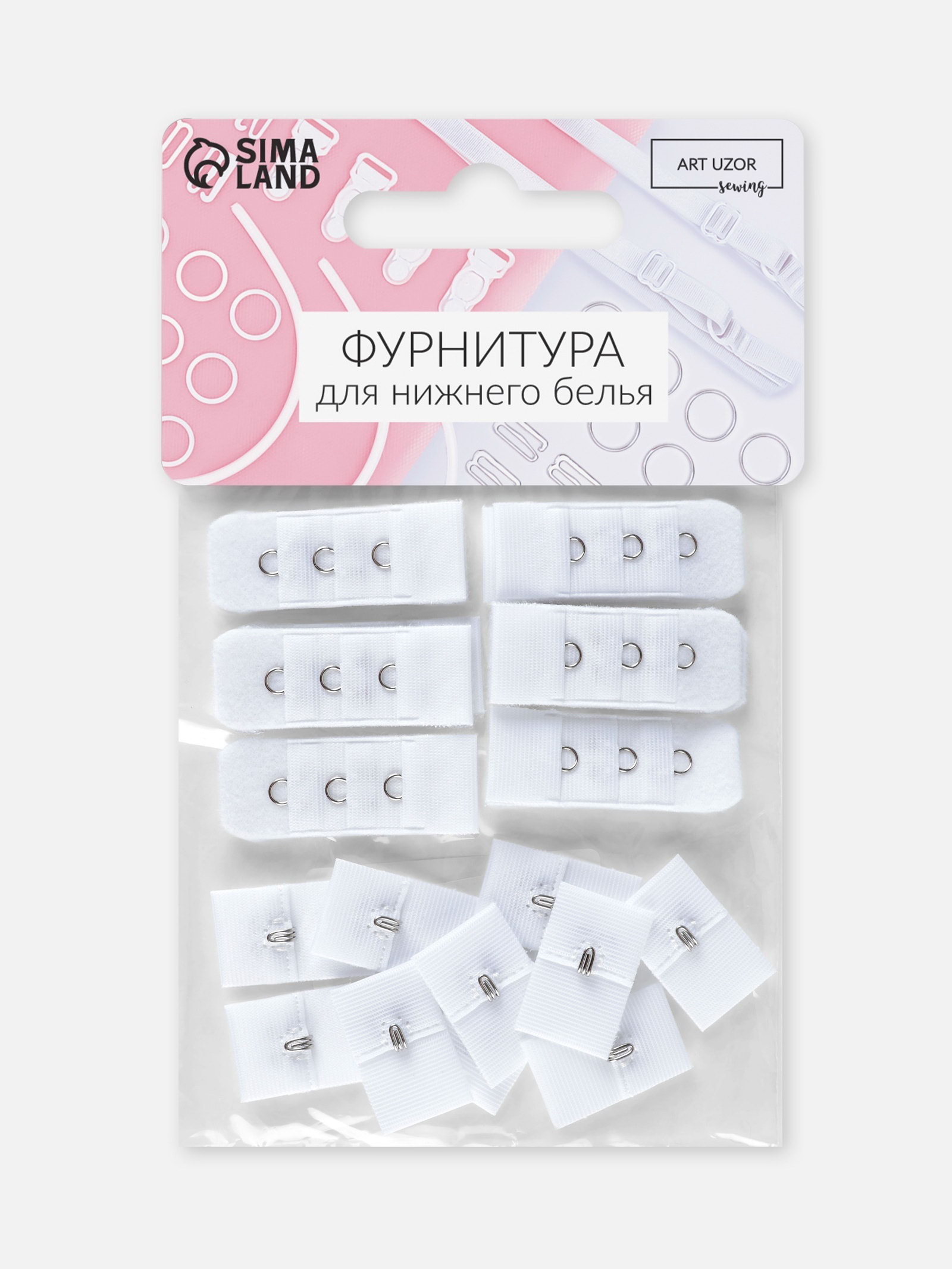Застёжка для бюстгальтера, 3 ряда 1 крючок, 10 шт., белая, 7x10x2 см., Арт Узор, Китай