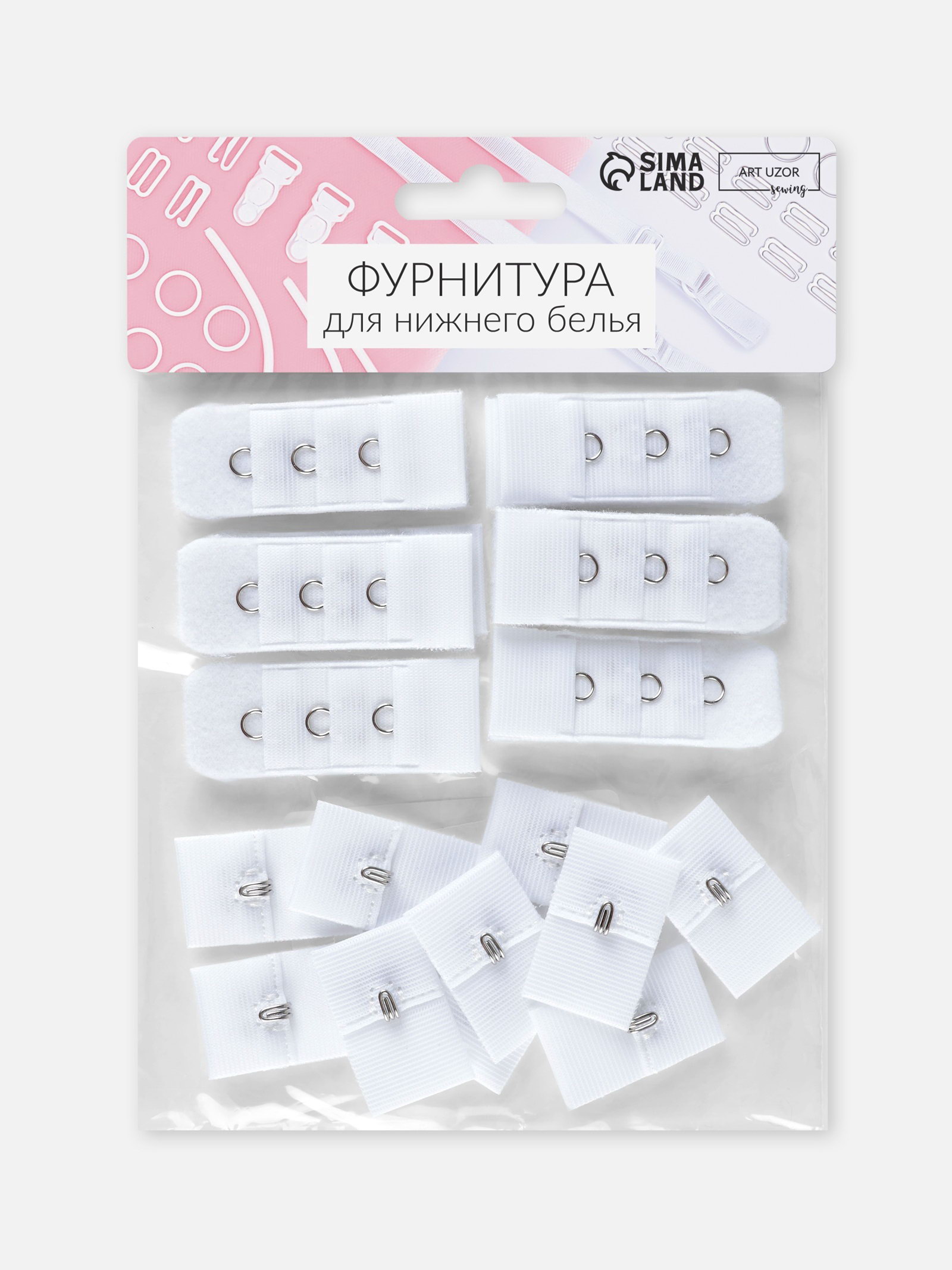 Застёжка для бюстгальтера, 3 ряда 1 крючок, 2x2.8 см, 2x5 см, 10 шт., белая, 7x10x2 см., Арт Узор, Китай
