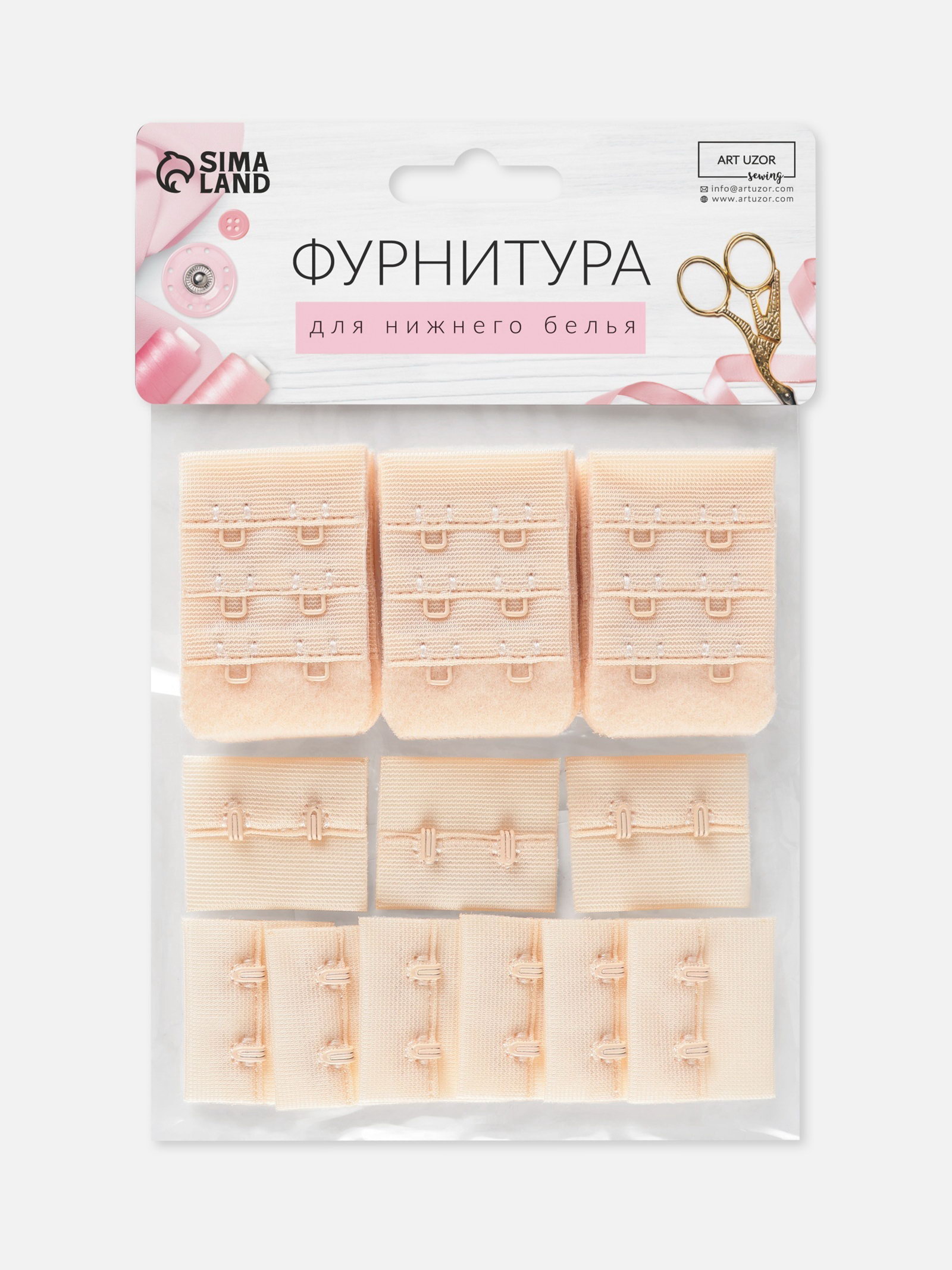 Застёжка для бюстгальтера, 3 ряда 2 крючка, 3.3x2.8 см, 3.3x5 см, 10 шт., бежевая, 12x15x2 см., Арт Узор, Китай