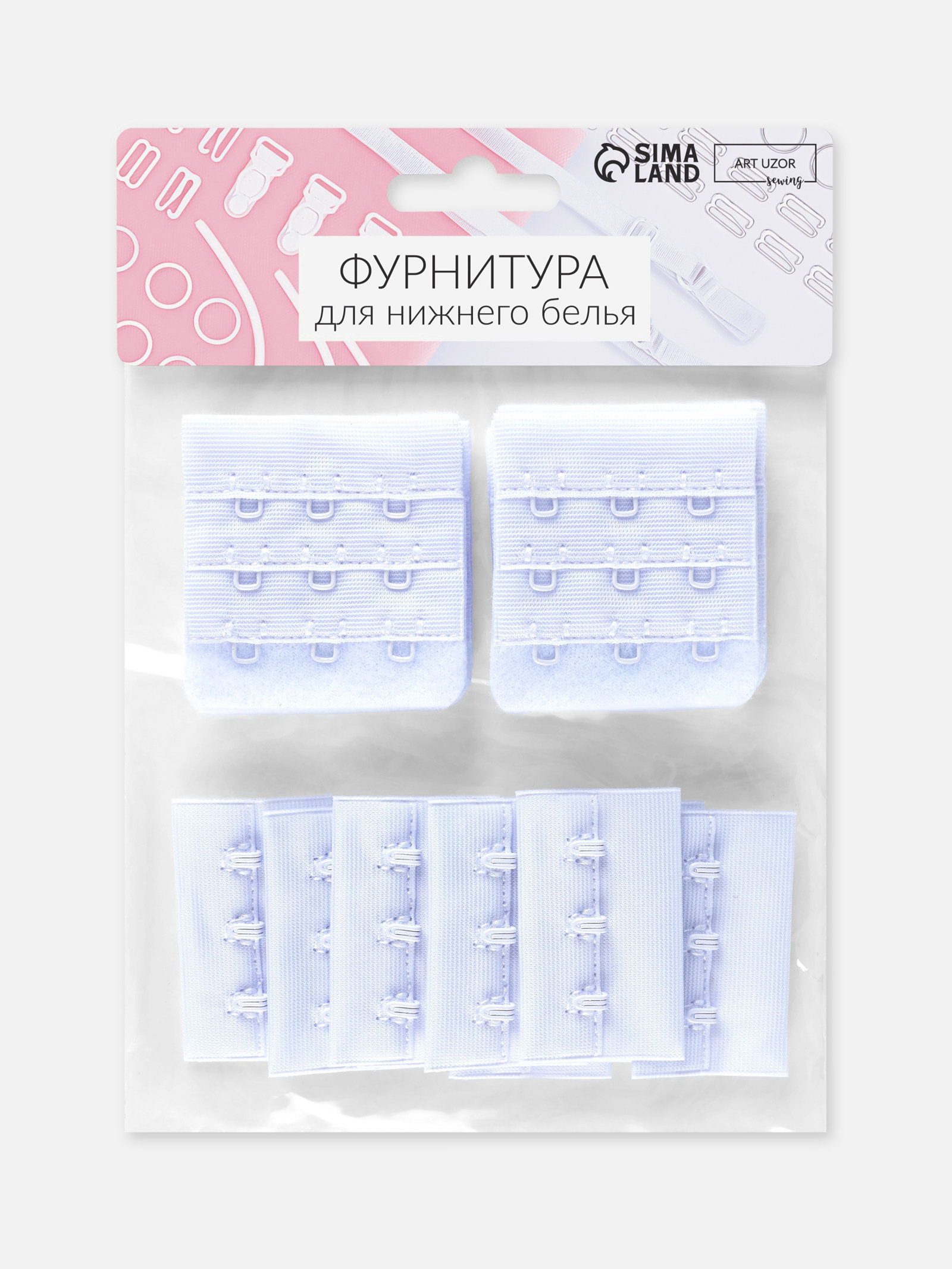 Застёжка для бюстгальтера, 3 ряда 3 крючка, 4.5x2.8 см, 4.5x4.9 см, 10 шт., белая, 12x15x2 см., Арт Узор, Китай