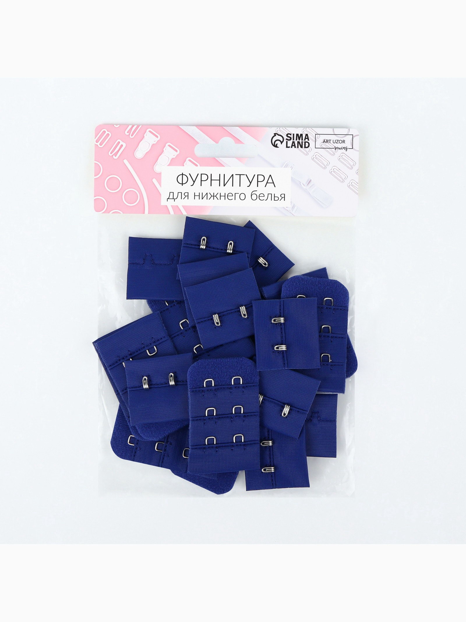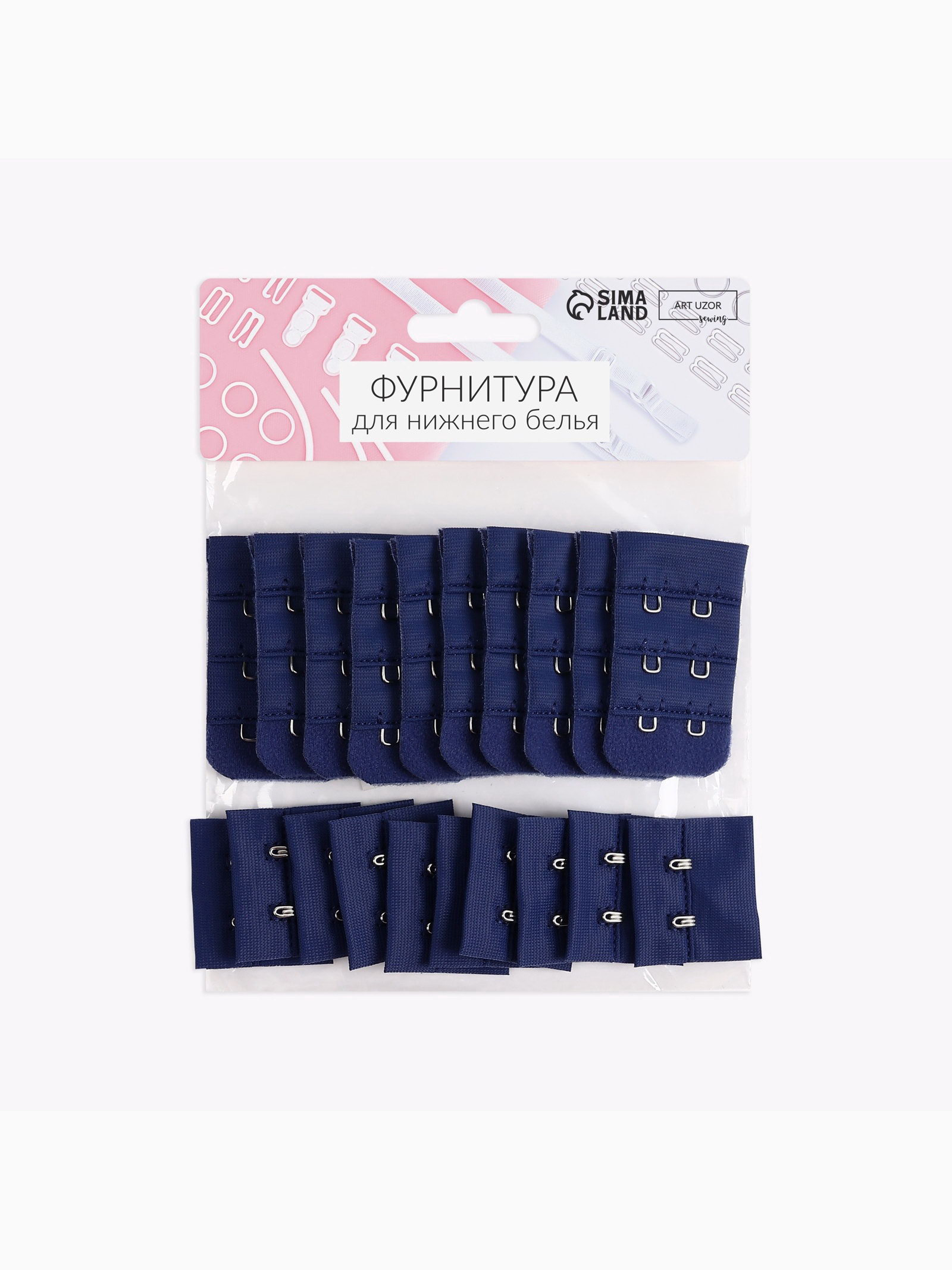 Застёжка для бюстгальтера, 3 ряда 2 крючка, 3x3 см, 3x5 см, 10 шт., тёмно-синяя, 12x15x0.5 см., Арт Узор, Китай