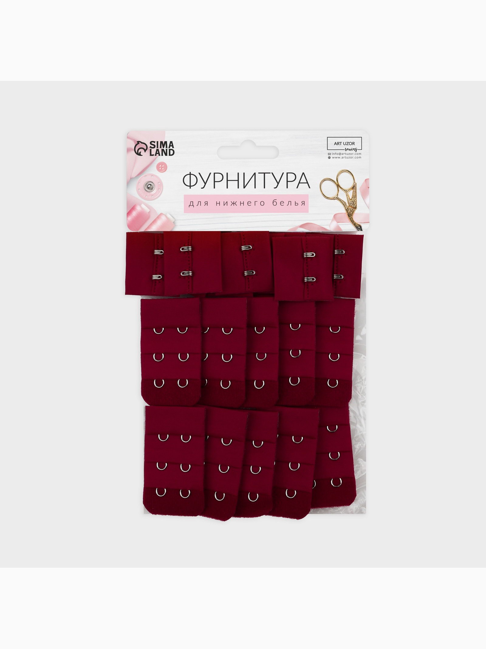 Застёжка для бюстгальтера, 3 ряда 2 крючка, 3x3 см, 3x5 см, 10 шт., бордовая, 12x15x0.5 см., Арт Узор, Китай