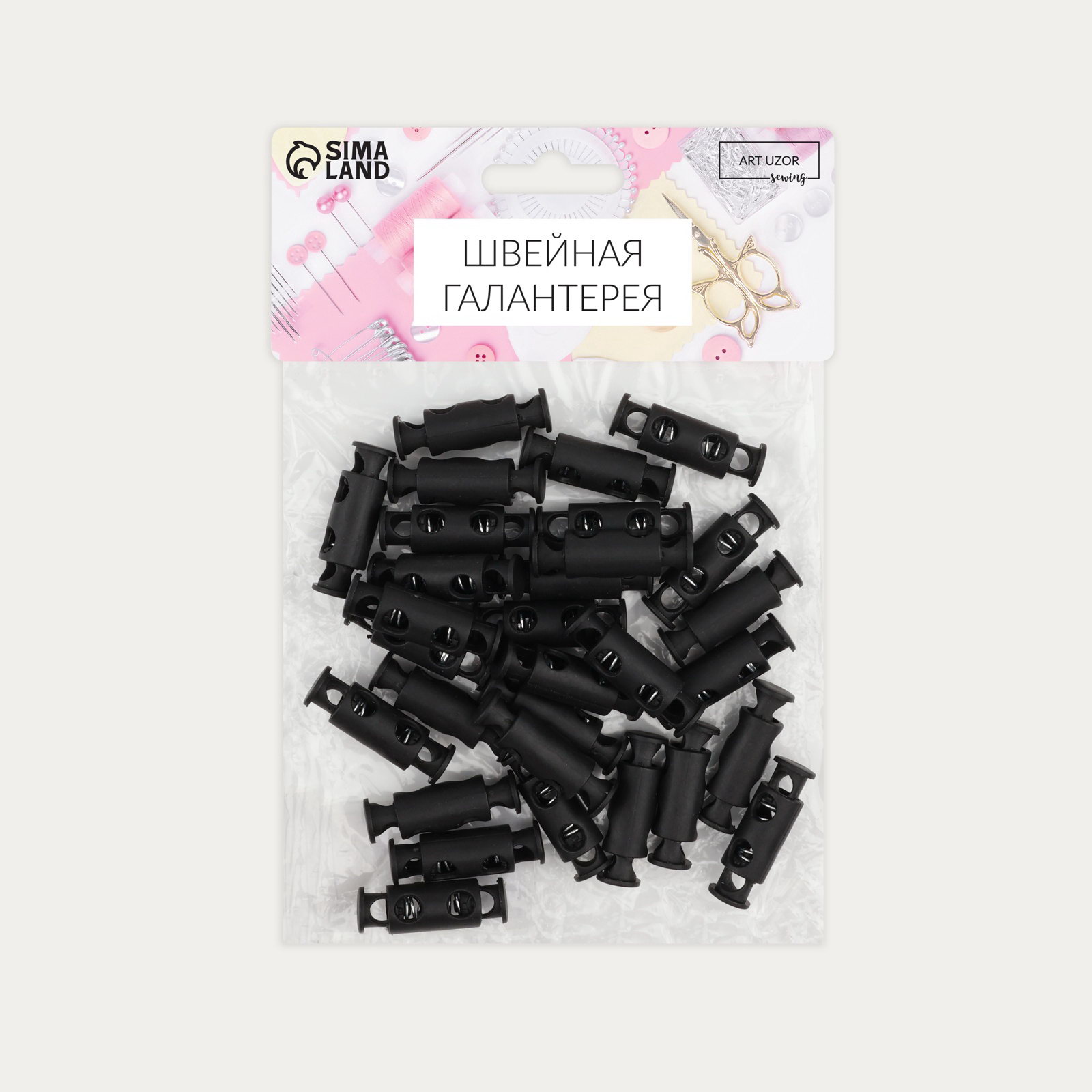Фиксатор для шнура, двойной, d=5 мм, 11x33 мм, 30 шт., чёрный, 50х50х1 см., Арт Узор, Китай