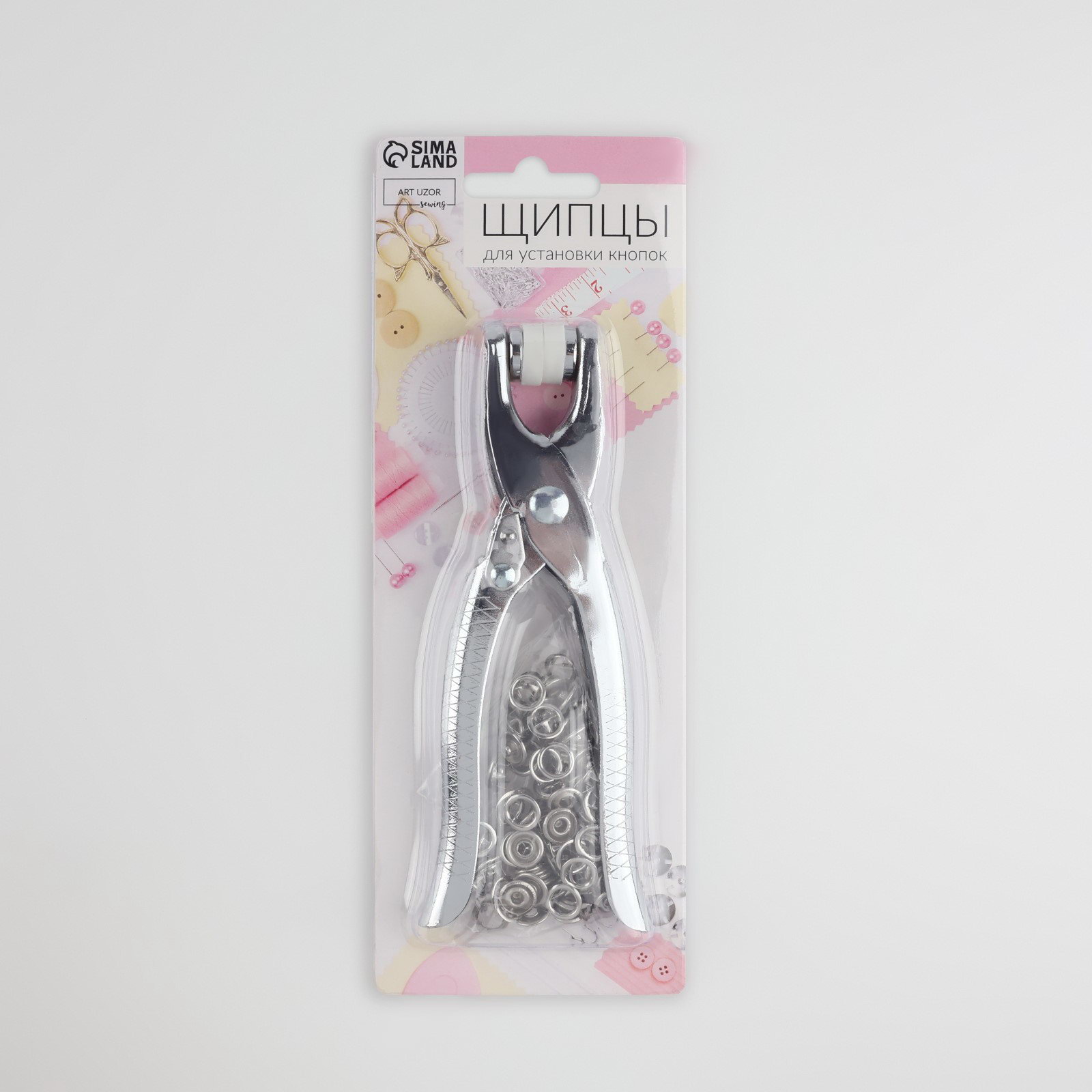 Щипцы для установки кнопок, с кнопками 25 шт., 14x6 см, цвет серебряный, 8x22x2 см., Арт Узор, Китай
