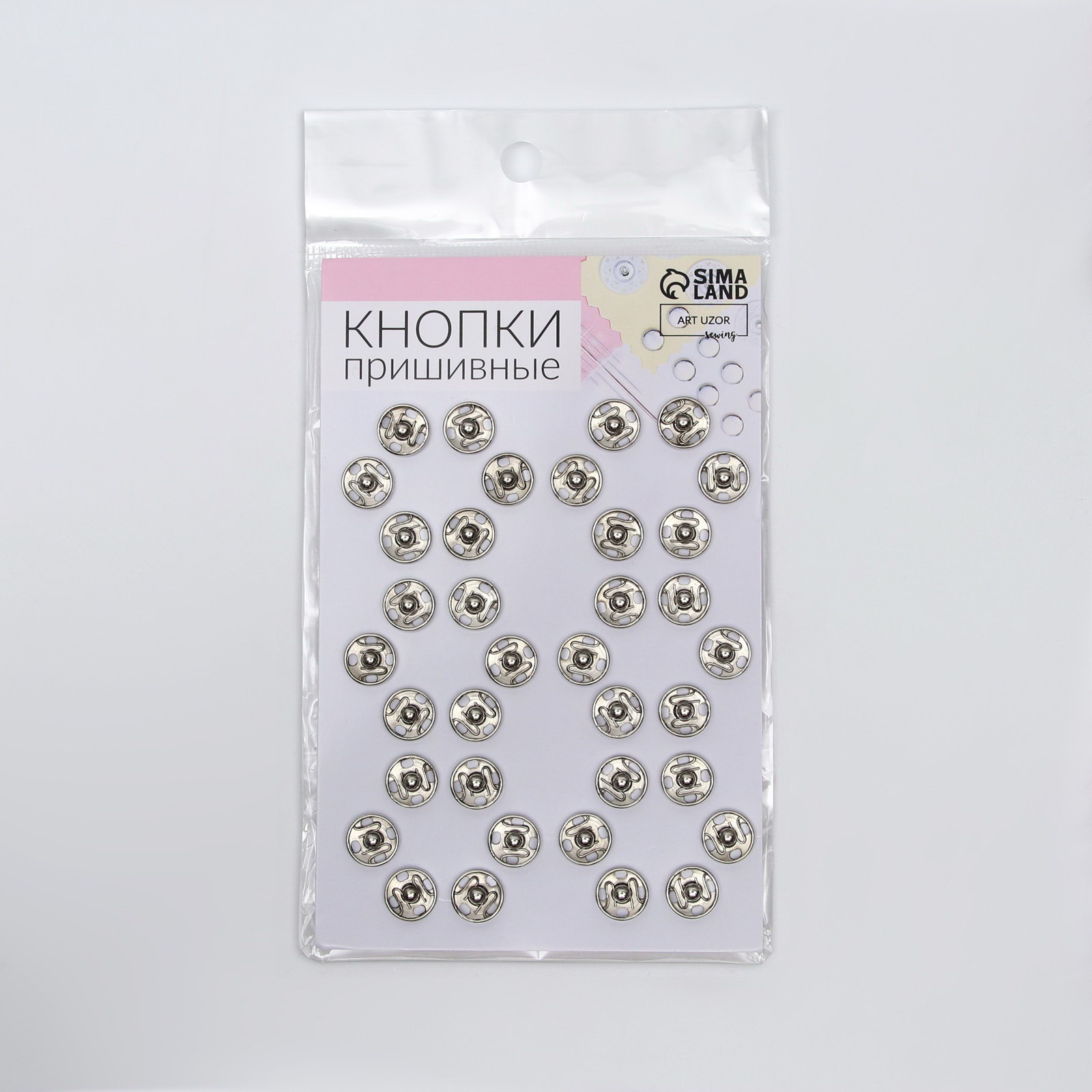 Кнопки пришивные, d=10 мм, 36 шт., цвет серебряный, 100х100х0.5 см., Арт Узор, Китай