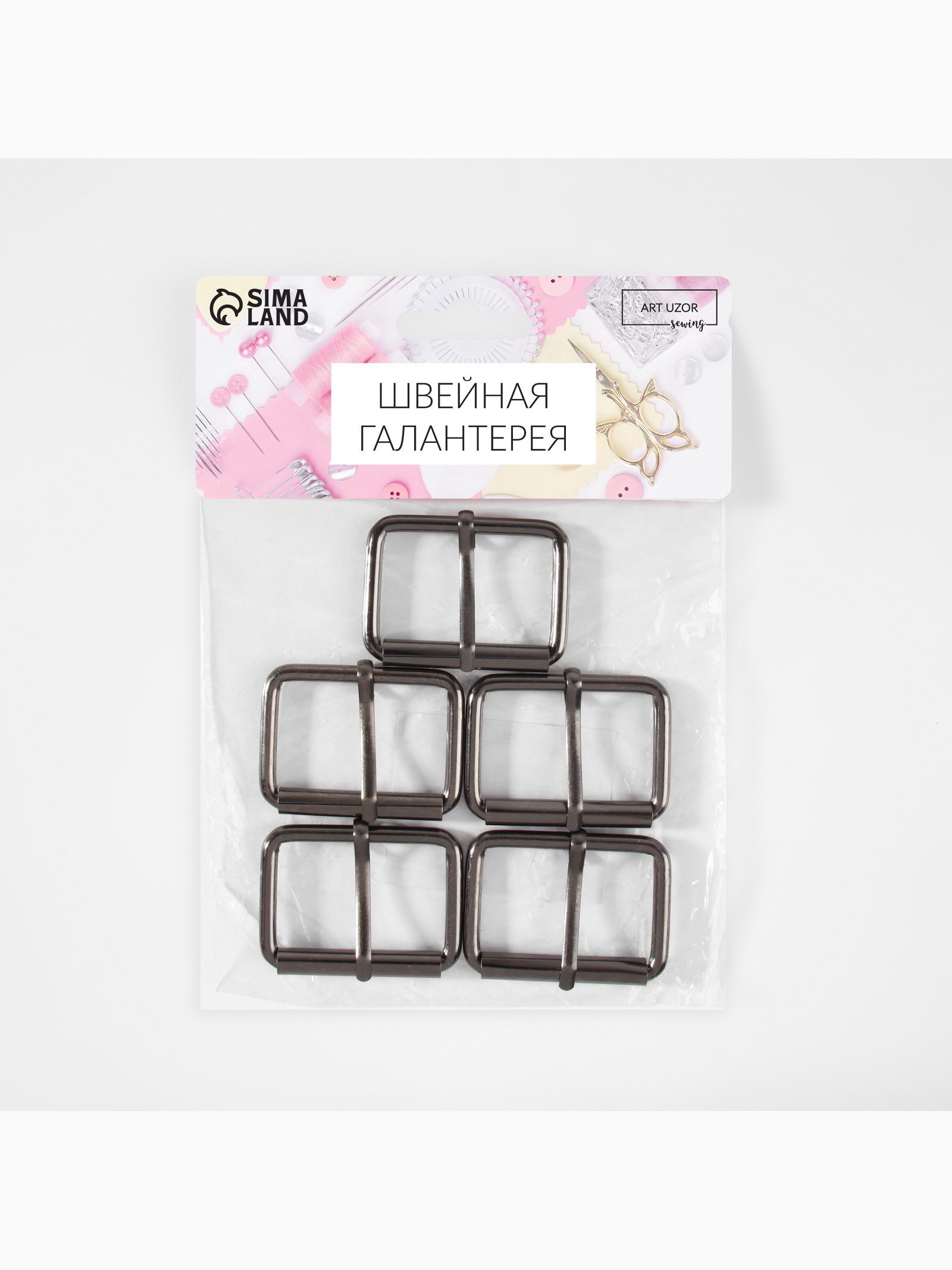 Пряжка проволочная, 4.6x3.4 см, 38 мм, 5 шт., цвет чёрный никель, 3.4x4.8x0.5 см., Арт Узор, Китай