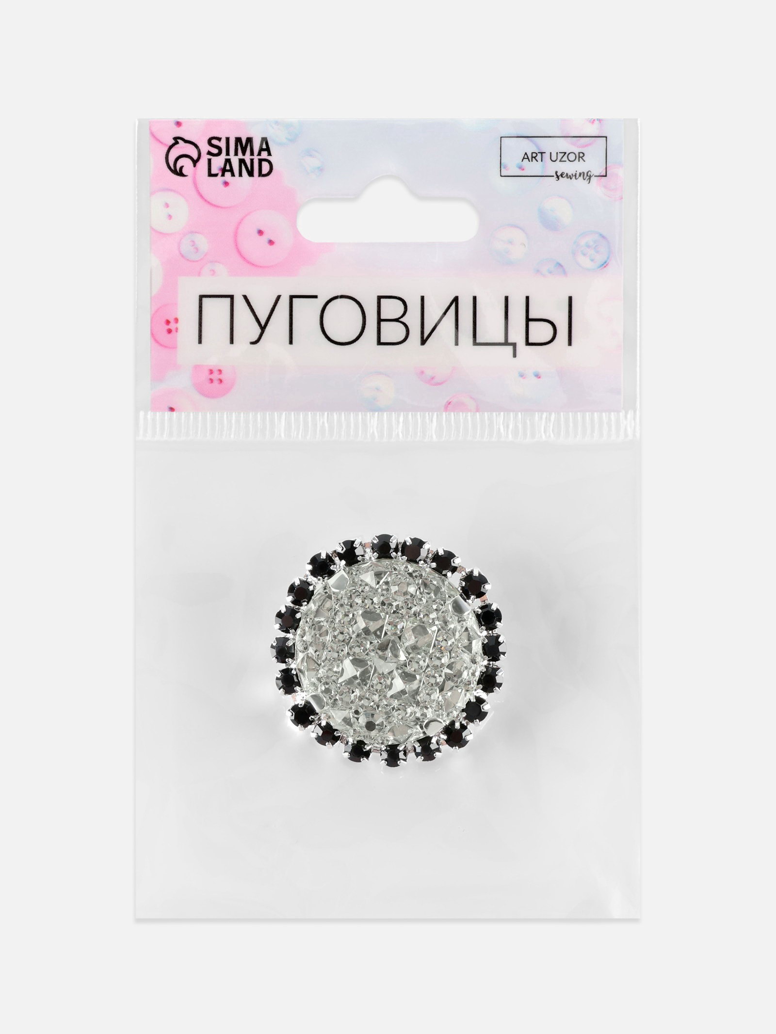 Пуговица декоративная, d=30 мм, цвет серебряный, чёрный, 3x3x1 см., Арт Узор, Китай