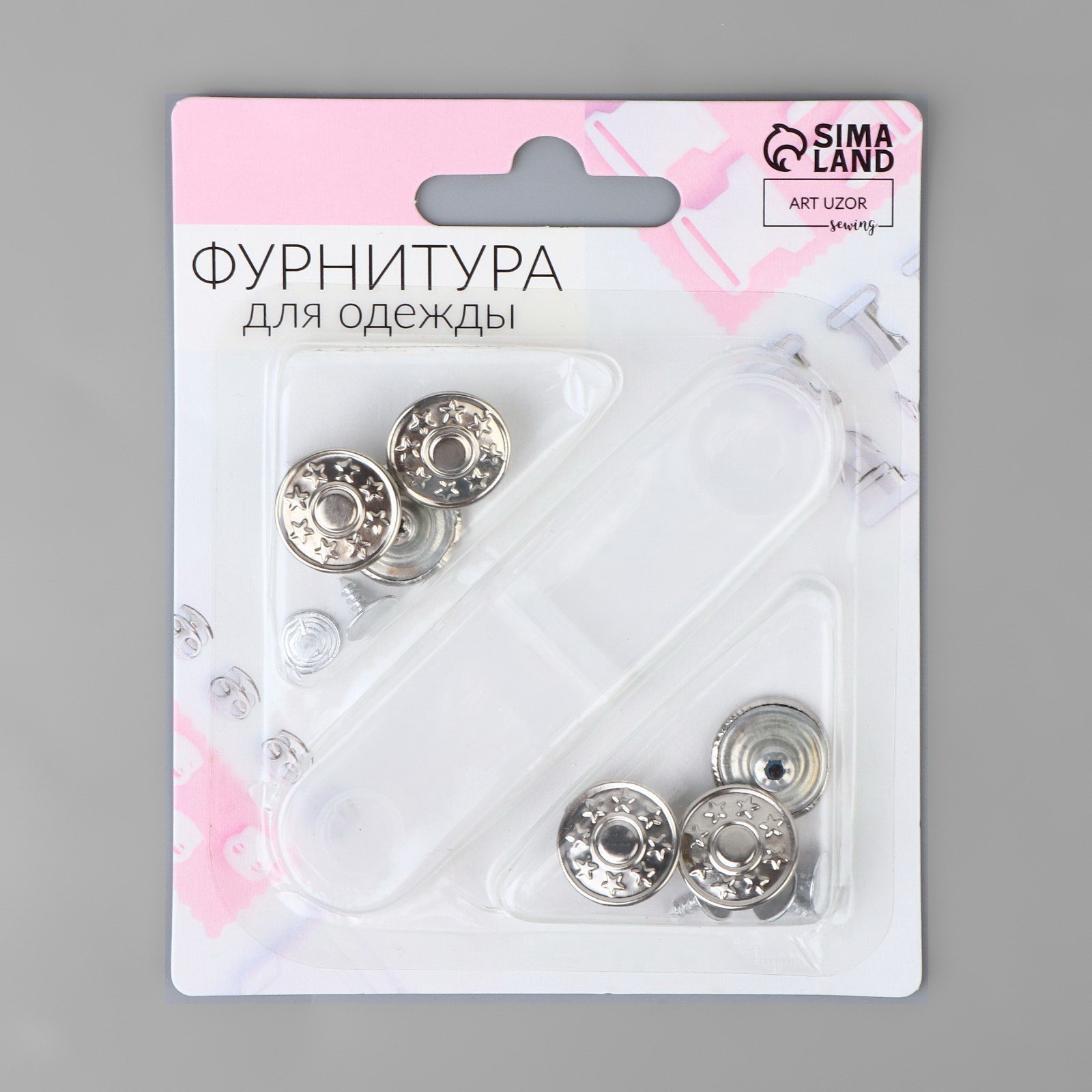 Набор джинсовых пуговиц, 17 мм, 6 шт., с установщиком, цвет серебряный, 9.5x12x2 см., Арт Узор, Китай