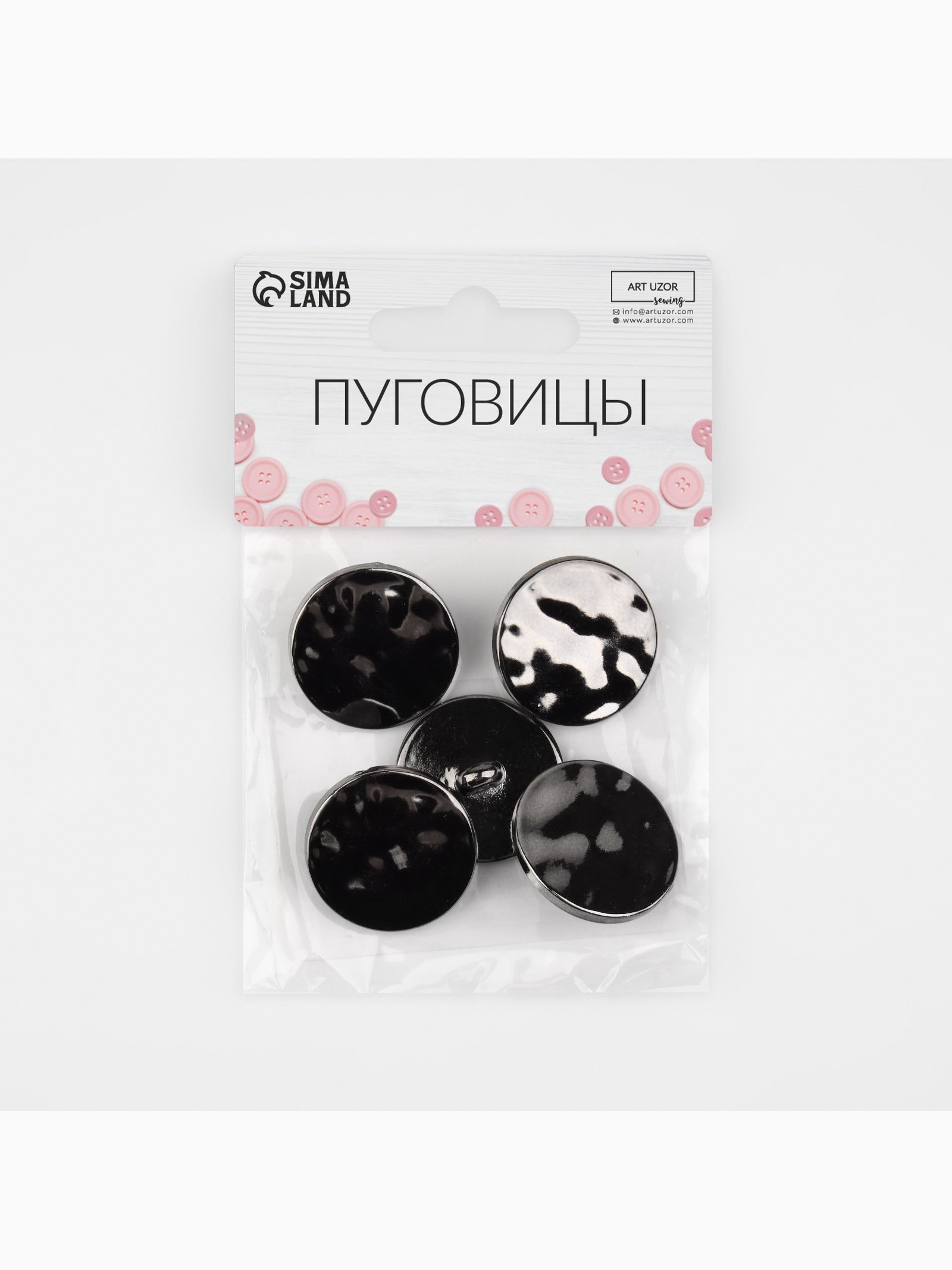 Пуговицы на ножке, d=25 мм, набор 5 шт., глянцевый, чёрный, 7x10x1 см., Арт Узор, Китай