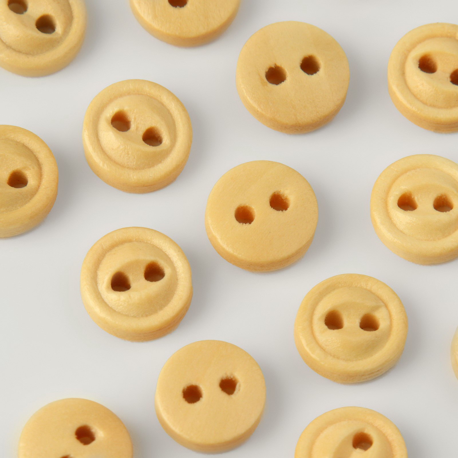 Пуговица деревянная, 2 прокола, d = 8 мм, цвет бежевый, Китай