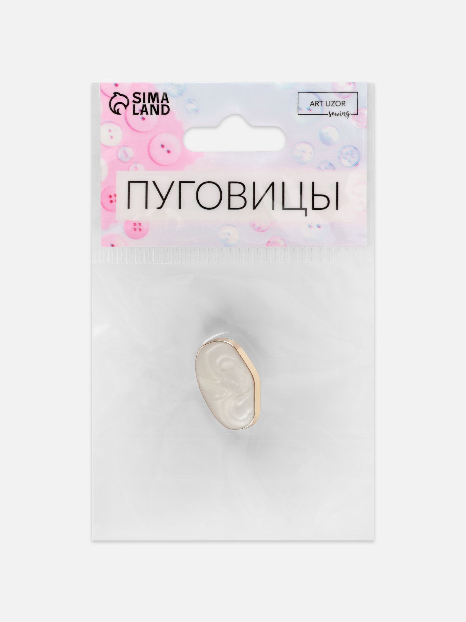 Пуговица декоративная, металлическая, 23x16 мм, цвет белый, золотой, 1x2.3x0.5 см., Арт Узор, Китай