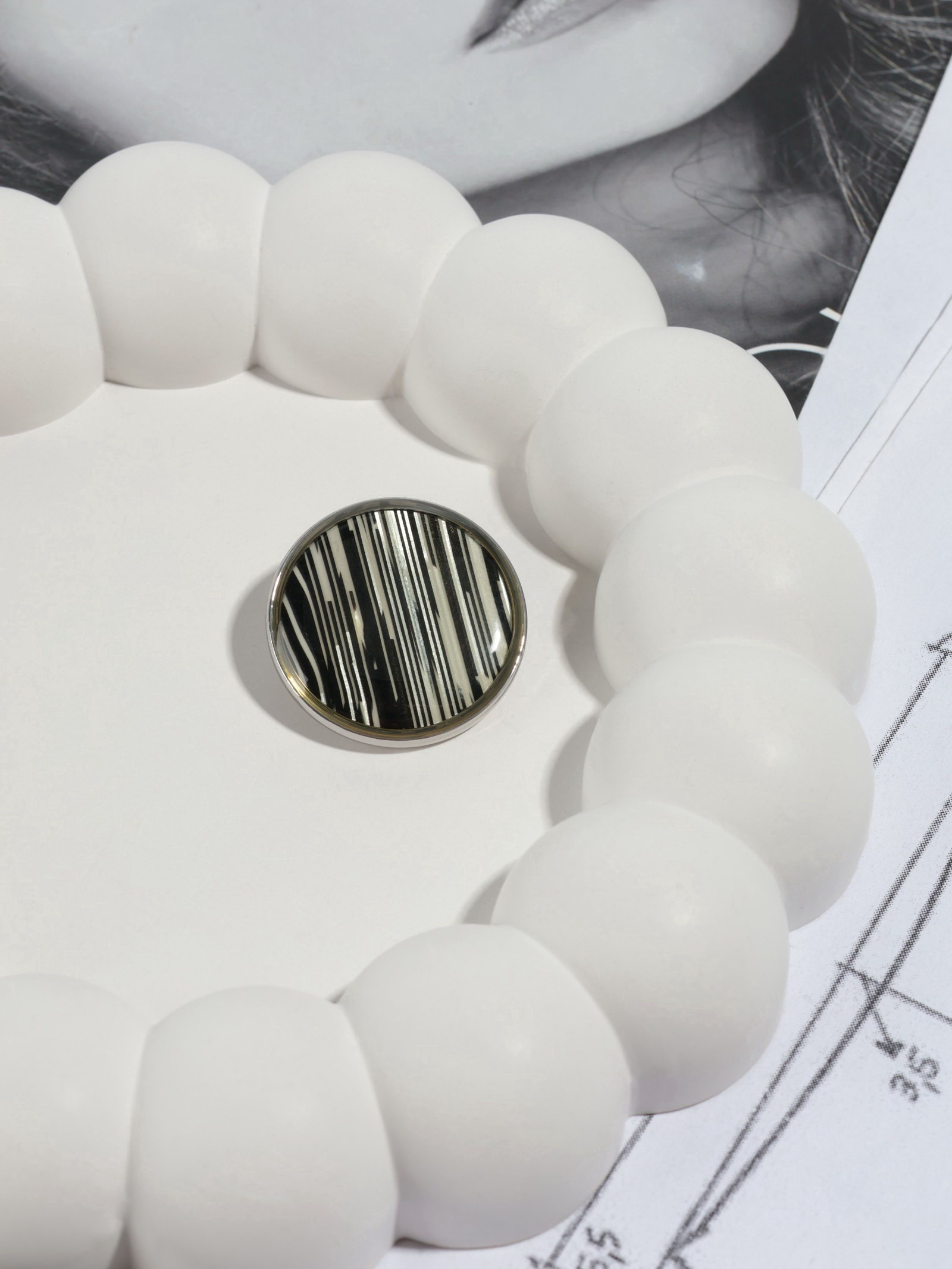 Где использовать Эта пуговица станет выразительной деталью на кожаной куртке, украшением сумки или завершающим штрихом изделия. Контрастное черно-серебристое покрытие сочетается как с темными, так и со светлыми материалами. | ||