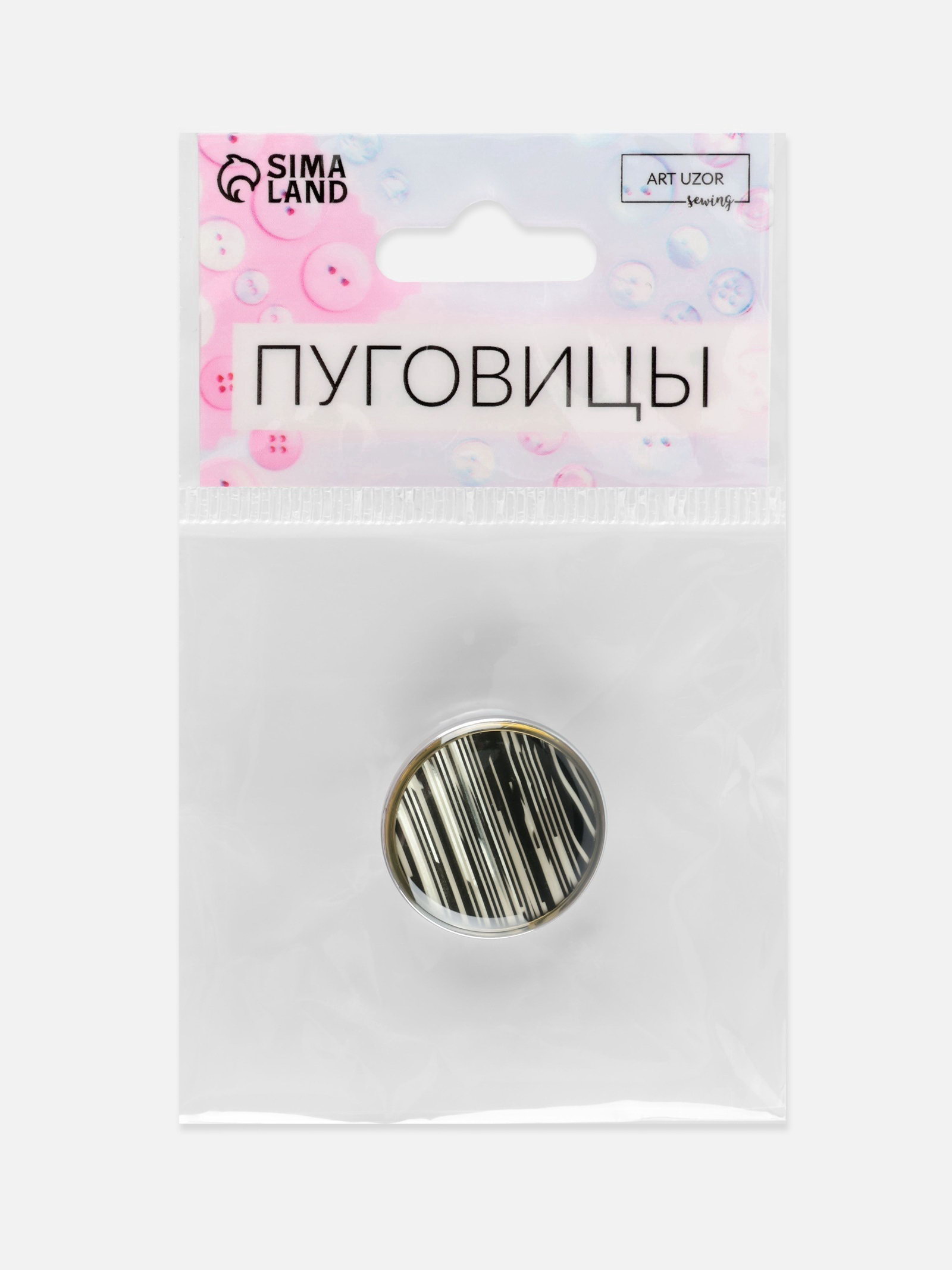 Пуговица металлическая на ножке "Рябь", декоративная, d=25 мм, цвет чёрный, серебряный, 7x10x0.5 см., Арт Узор, Китай