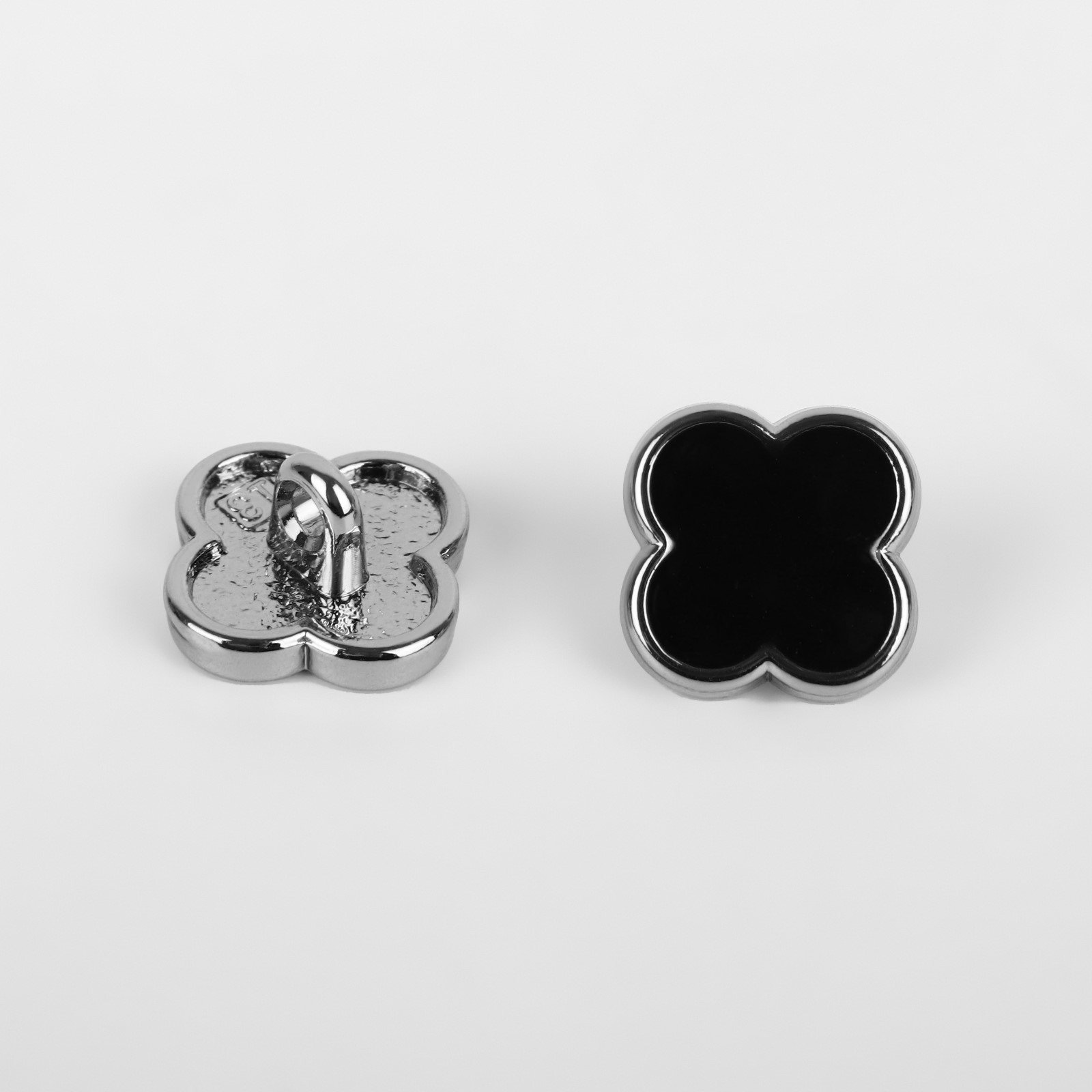 Набор пуговиц на ножке "Клевер", d = 13 мм, 5 шт, цвет чёрный/серебряный, 7x10x0.5 см., Арт Узор, Китай