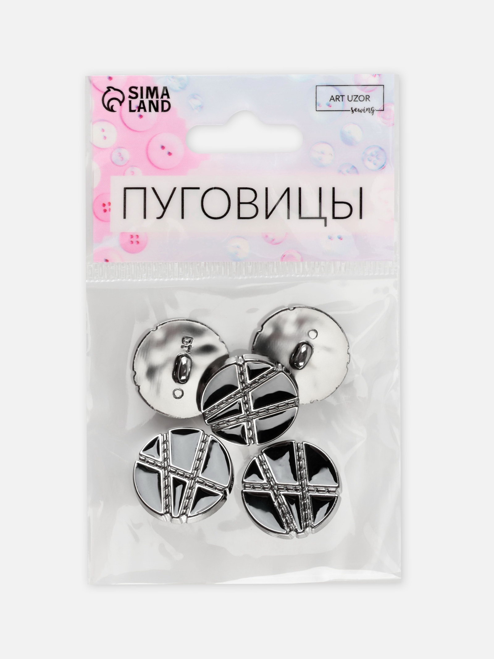 Пуговицы на ножке, d=21.5 мм, набор 5 шт., цвет чёрный, серебряный, 7x10x0.5 см., Арт Узор, Китай