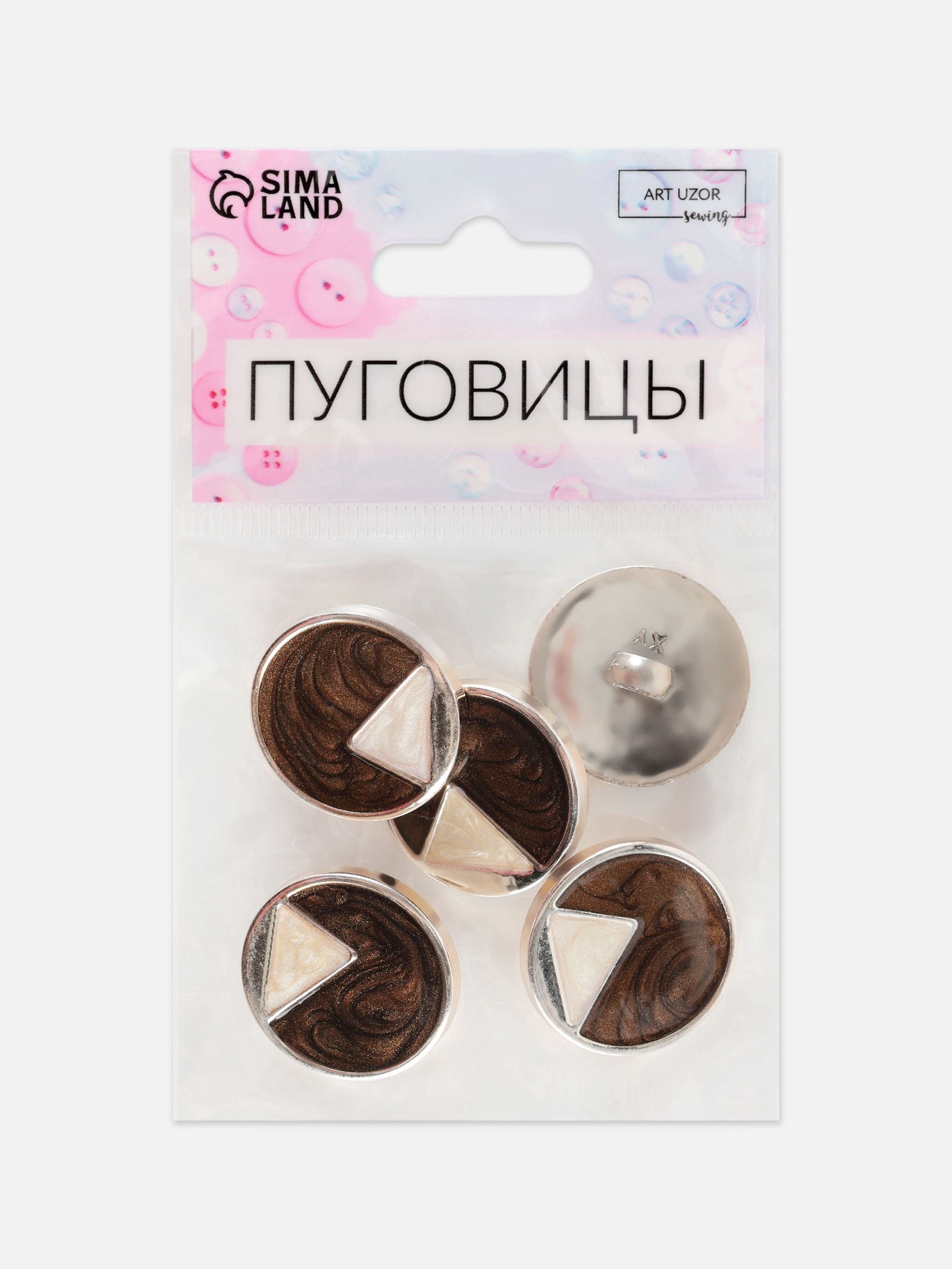 Пуговицы на ножке, d=25 мм, набор 5 шт., цвет коричневый, кремовый, золотой, 7x10x0.5 см., Арт Узор, Китай