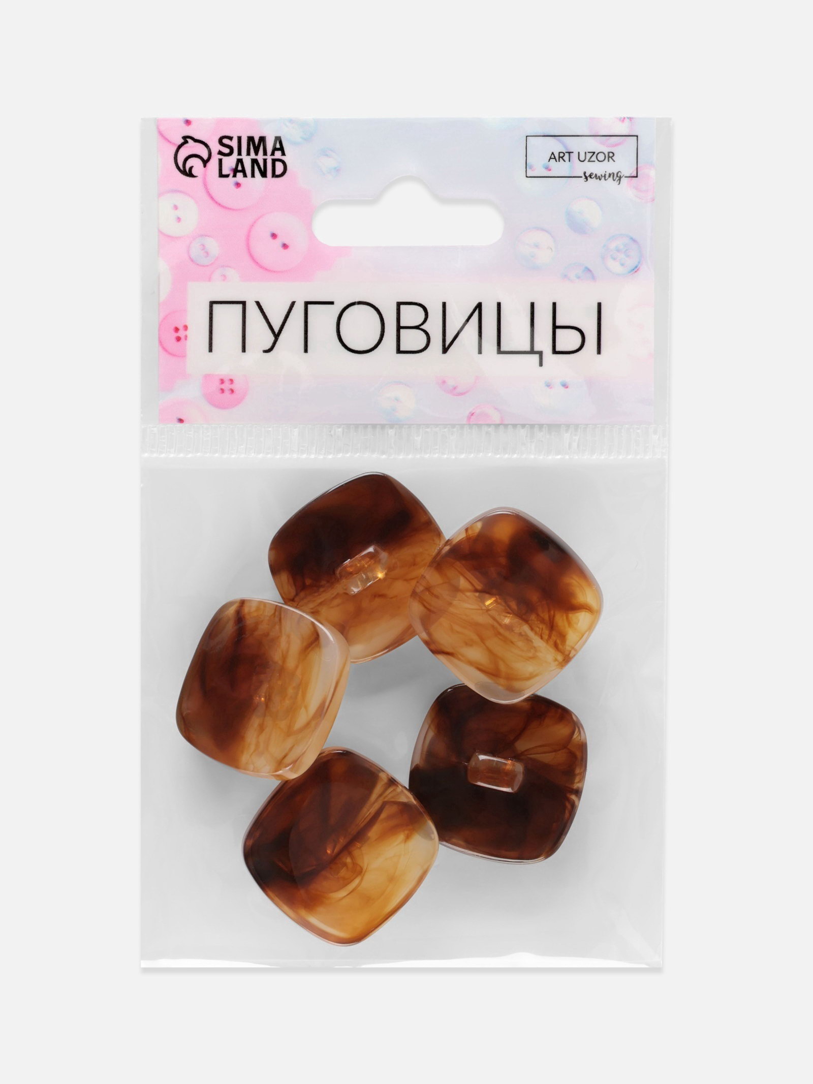 Пуговицы на ножке "Квадрат", 22x22 мм, набор 5 шт., коричневые, 7x10x0.5 см., Арт Узор, Китай