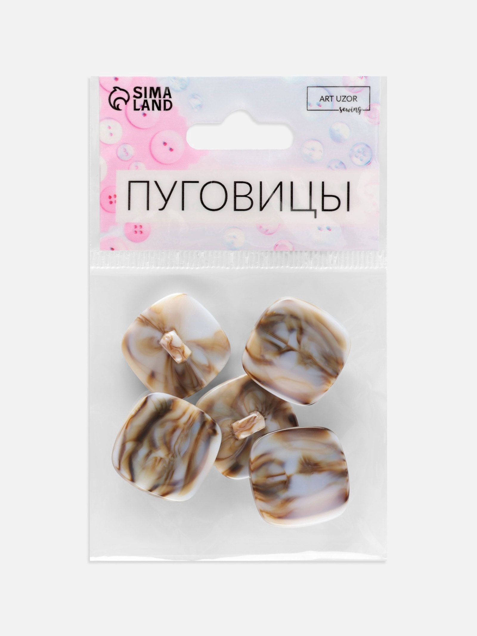 Пуговицы на ножке "Квадрат", 22x22 мм, набор 5 шт., серо-бежевые, 7x10x0.5 см., Арт Узор, Китай