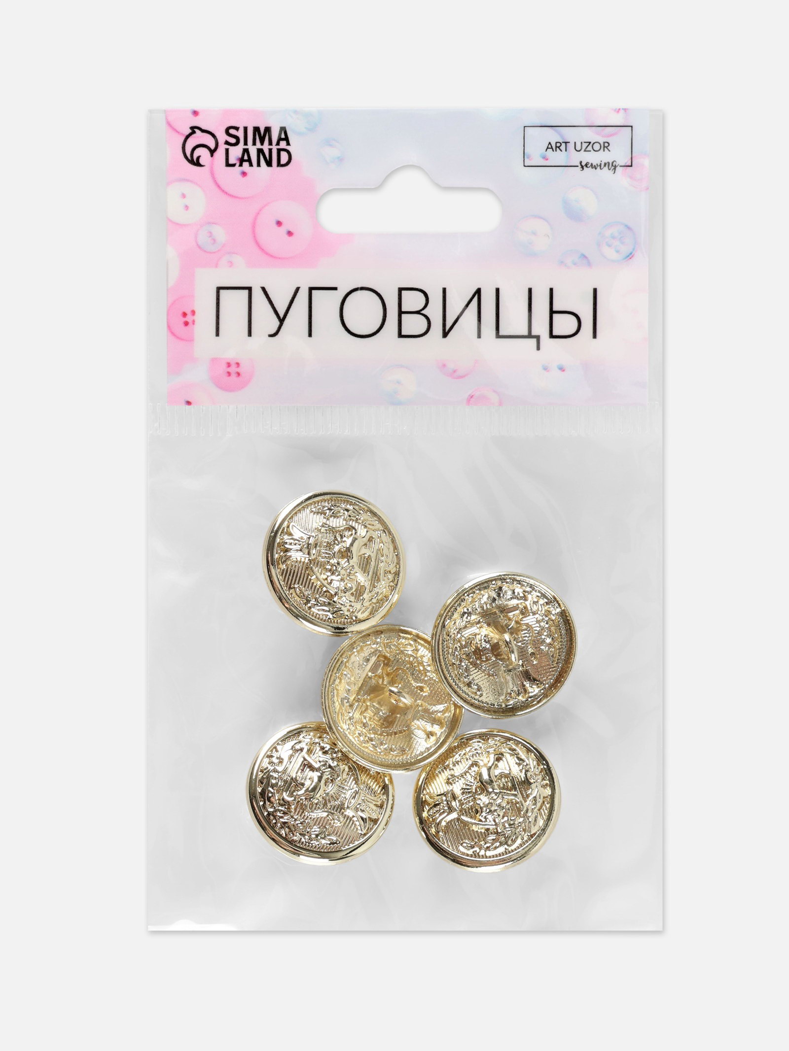 Пуговицы на ножке "Золотая монета", металлические, d=20 мм, набор 5 шт., цвет золотой, 7x10x1 см., Арт Узор, Китай