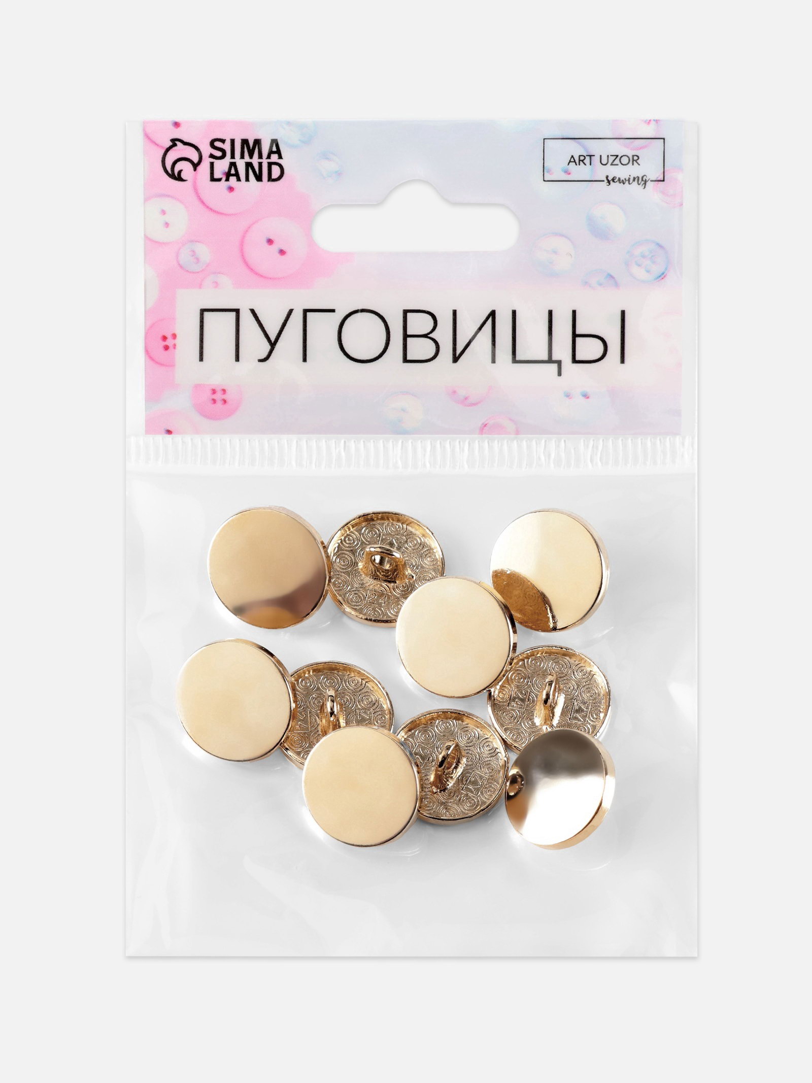 Пуговицы на ножке, металлические, d=15 мм, набор 10 шт., глянцевые, цвет золотой, 7x10x1 см., Арт Узор, Китай