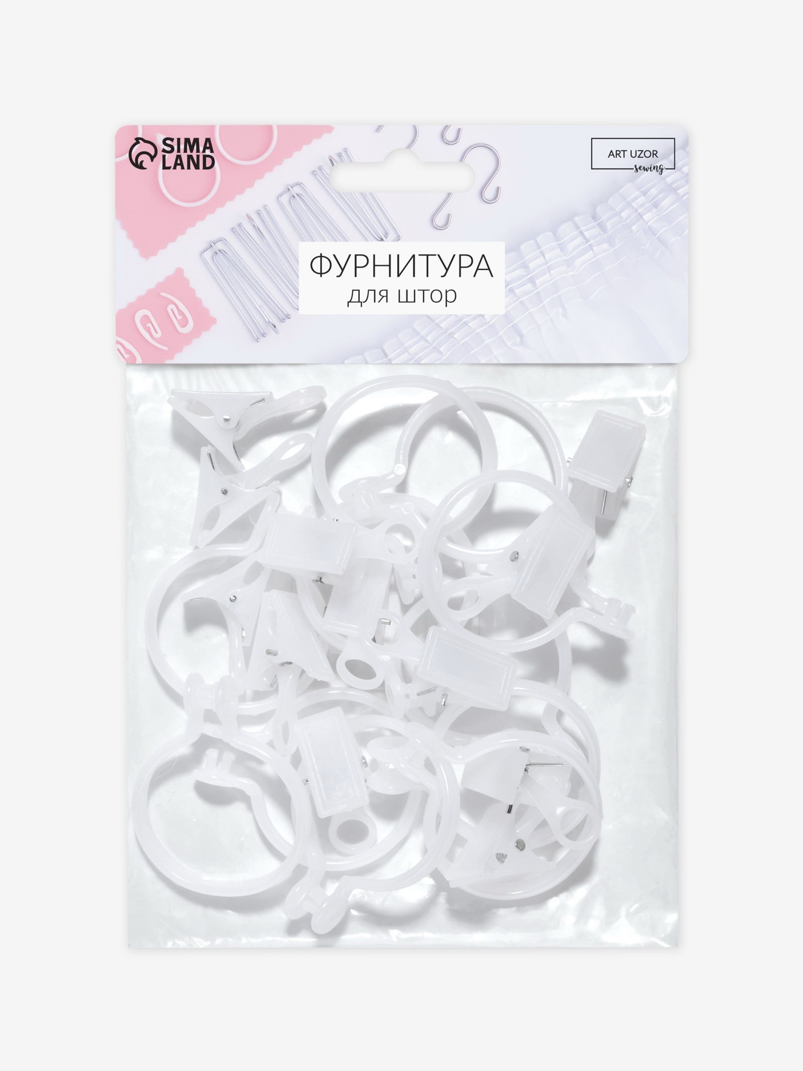 Кольцо для карниза, с зажимом, d=34/39 мм, 20 шт., белое, 12x15x1 см., Арт Узор, Китай