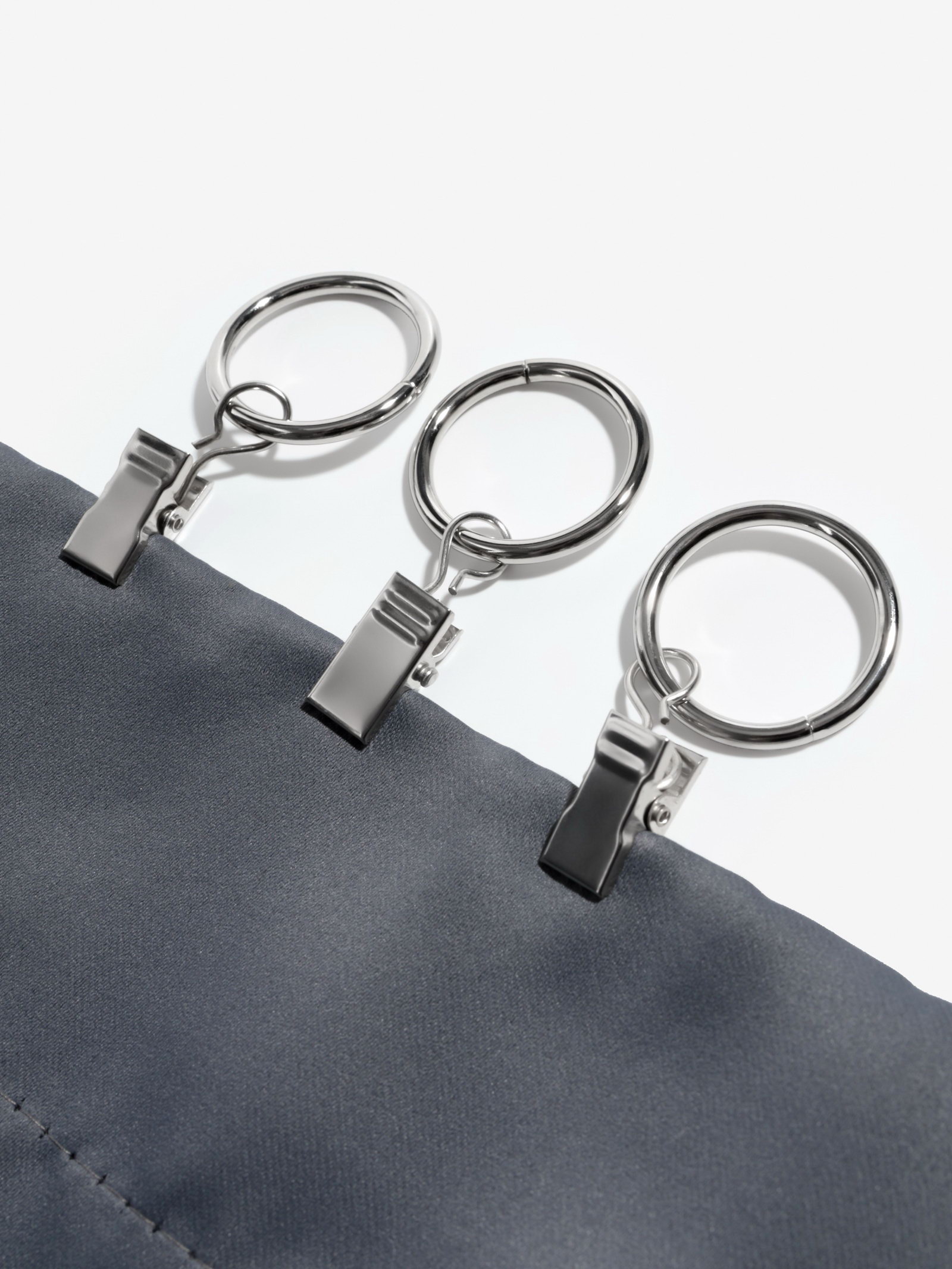 Идеальное решение для дома Эти кольца особенно удобны, когда нужно быстро обновить внешний вид штор без замены карниза. Металлическая конструкция отличается долговечностью, а гладкая поверхность обеспечивает бесшумное скольжение. Простая установка – просто закрепите зажим на ткани и наденьте кольцо на карниз. | ||