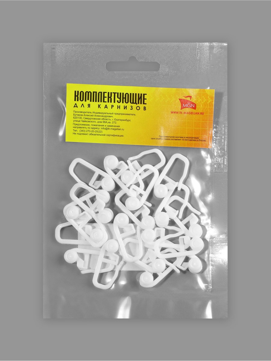 Крючок для штор, роликовый, 25x11 мм, белый, Магеллан, Россия