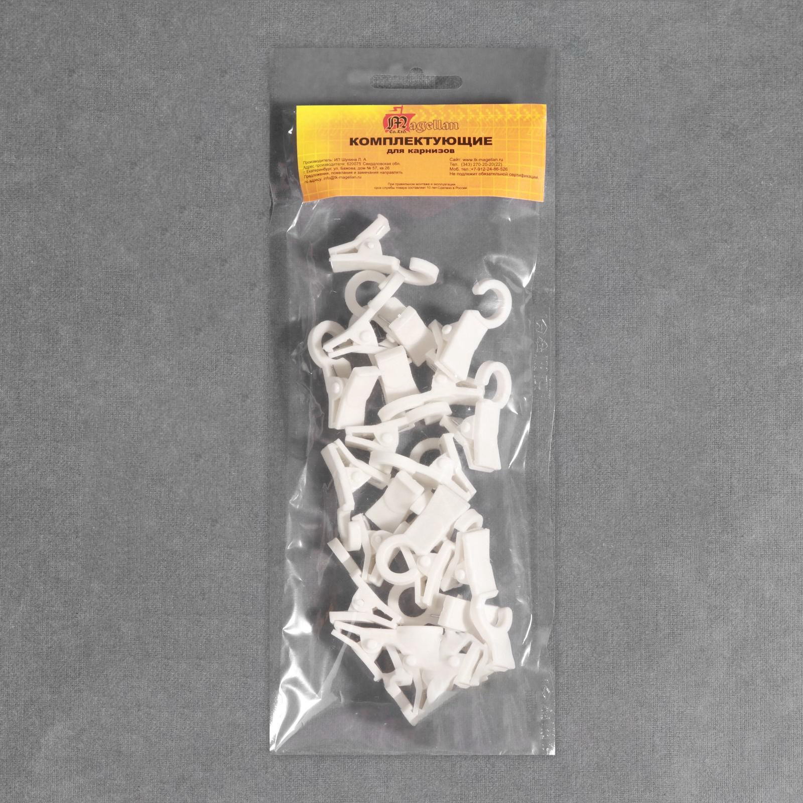Зажим для штор, на кольцо, 35x20 мм, цвет белый, цена за 1 штуку, Магеллан, Россия
