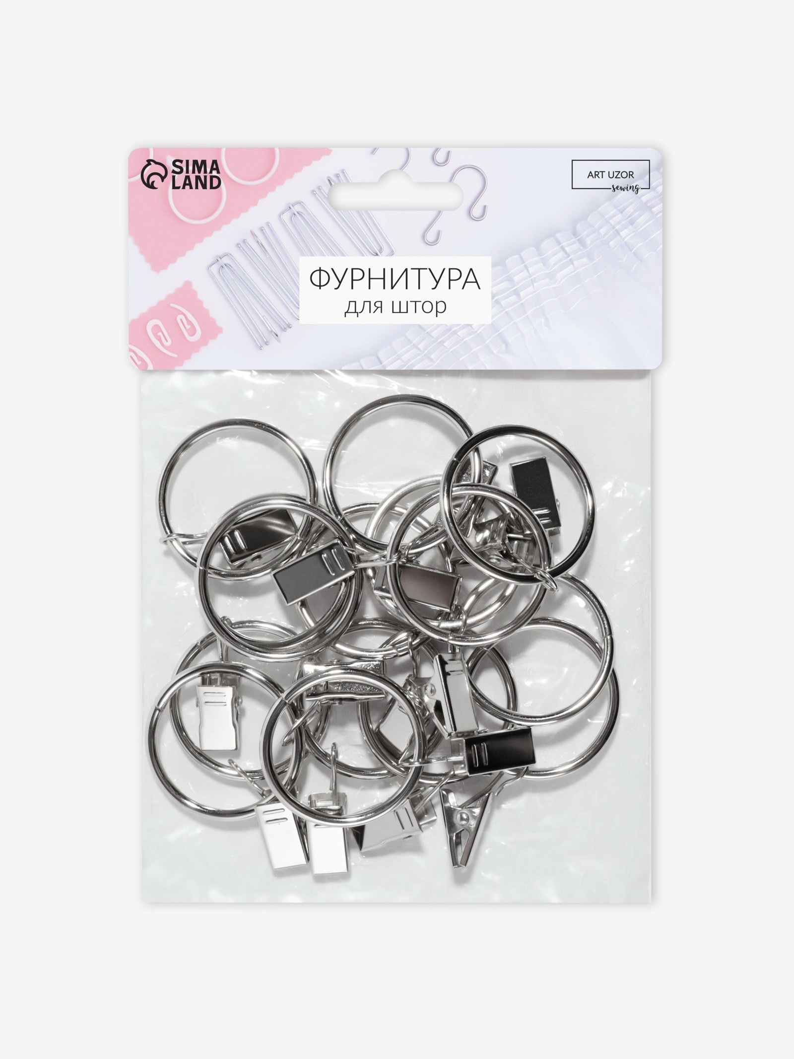 Кольцо для карниза, с зажимом, d=32/38 мм, 20 шт., цвет серебряный, 12x15x1 см., Арт Узор, Китай