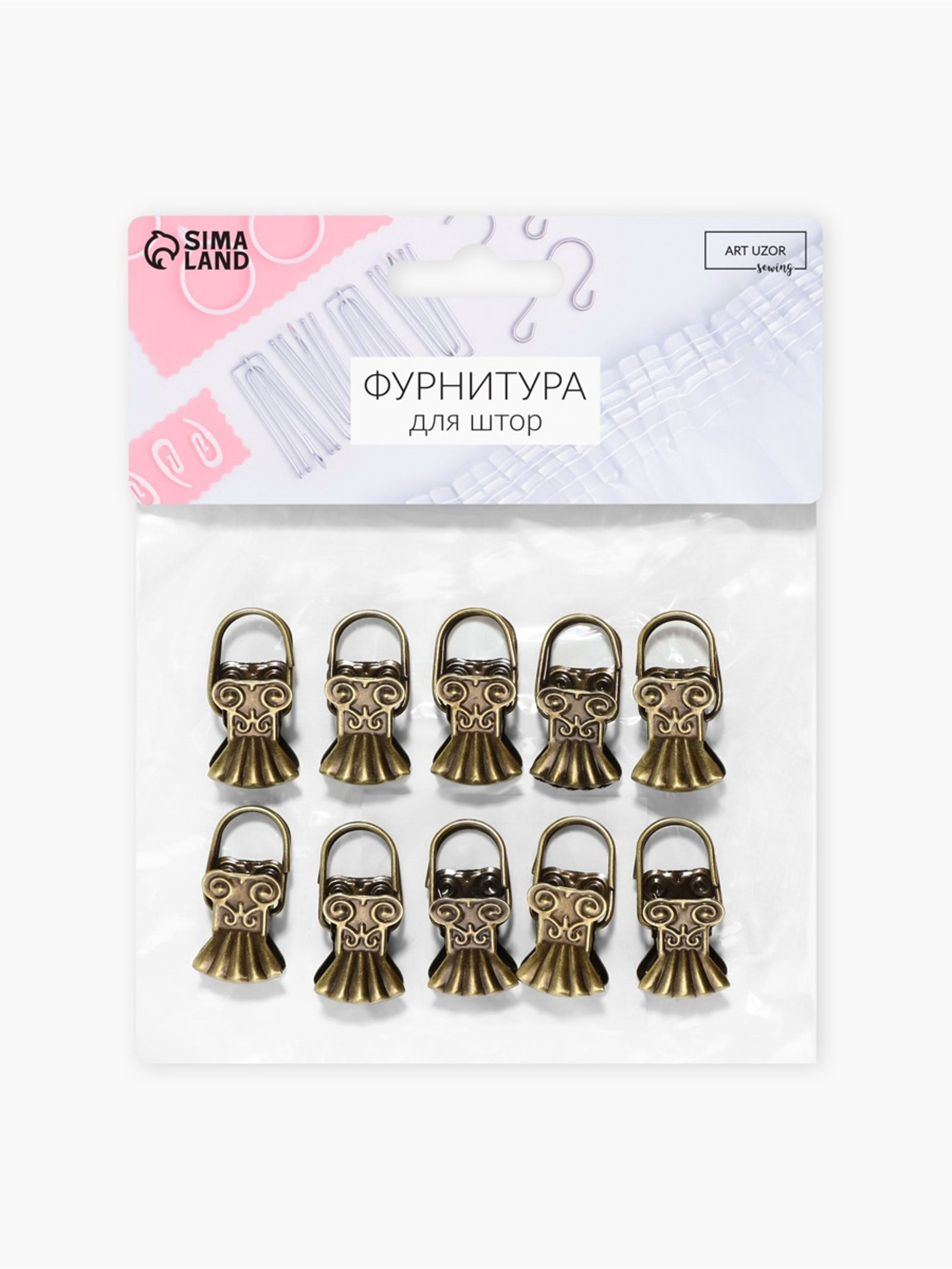 Зажим для штор "Ракушка", 30x15 мм, 10 шт., цвет бронзовый, 12x15x1 см., Арт Узор, Китай