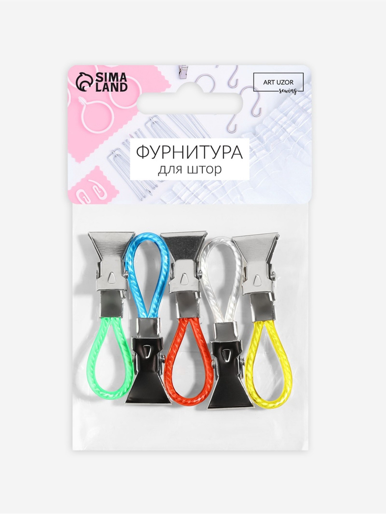 Зажим для штор, на петле, 50x15 мм, 5 шт., разноцветный, 7x10x1.5 см., Арт Узор, Китай