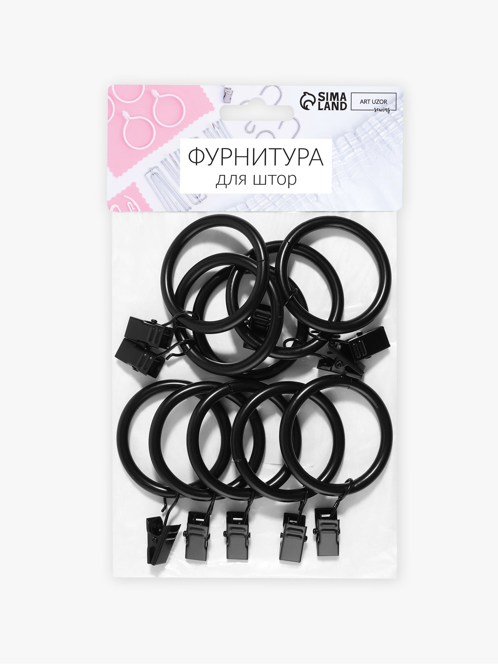 Вид шторной фурнитуры: Зажим, Кольцо Размер упаковки: 12 x 2.5 x 16 см. Цвет: Чёрный tnved: 8302419000 В наборе, шт.: 10 Набор: Нет Окончательный штрих для ваших окон кольца для штор с прищепками. Эти универсальные черные аксессуары предназначены для легкой и аккуратной фиксации тканей на карнизе, обеспечивая безупречный вид вашего интерьера. Незаметная элегантность металлической конструкции позволяет использовать их как с воздушными, так и с тяжелыми шторами, поддерживая общий стиль комнаты. Основные преимущества