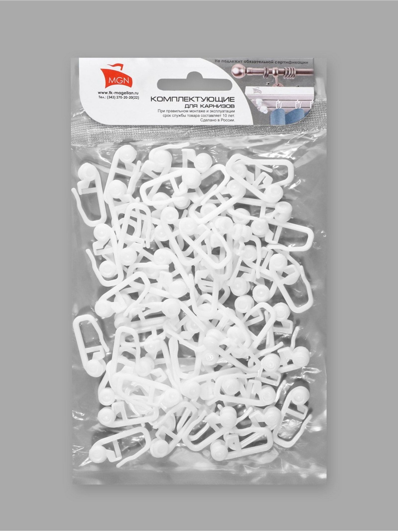 Крючок для штор, роликовый, 25x11 мм, белый, Магеллан, Россия