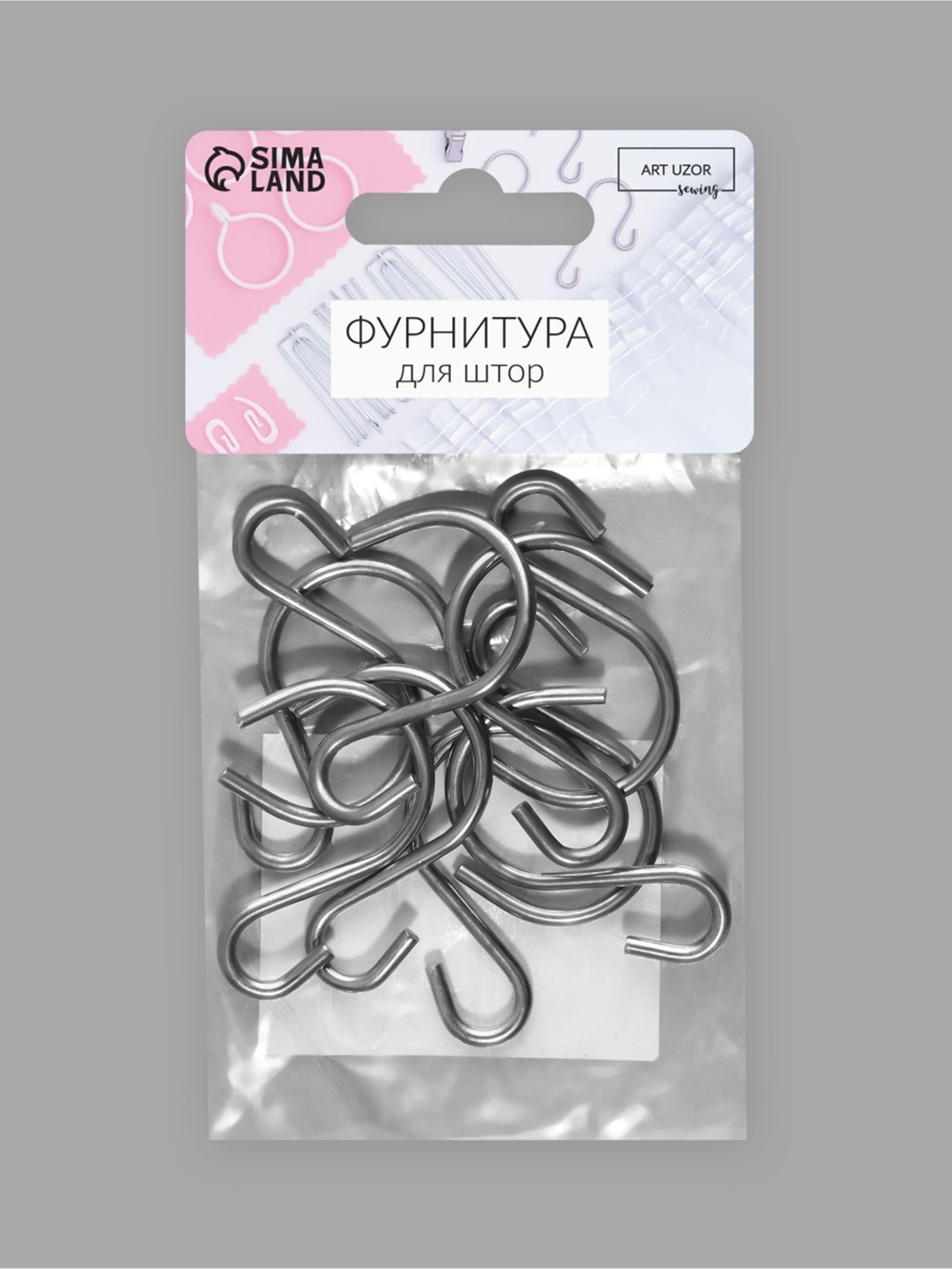 Крючок для штор, 25x39 мм, 10 шт., цвет серебряный, 7x10x1 см., Арт Узор, Китай
