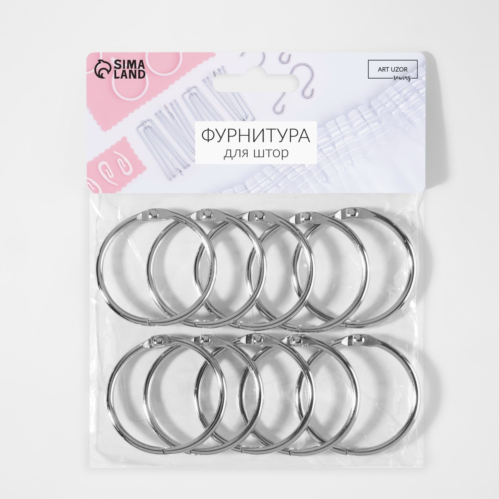 Кольцо для карниза, разъёмное, d=38/44 мм, 10 шт., цвет серебряный, 12x15x1 см., Арт Узор, Китай