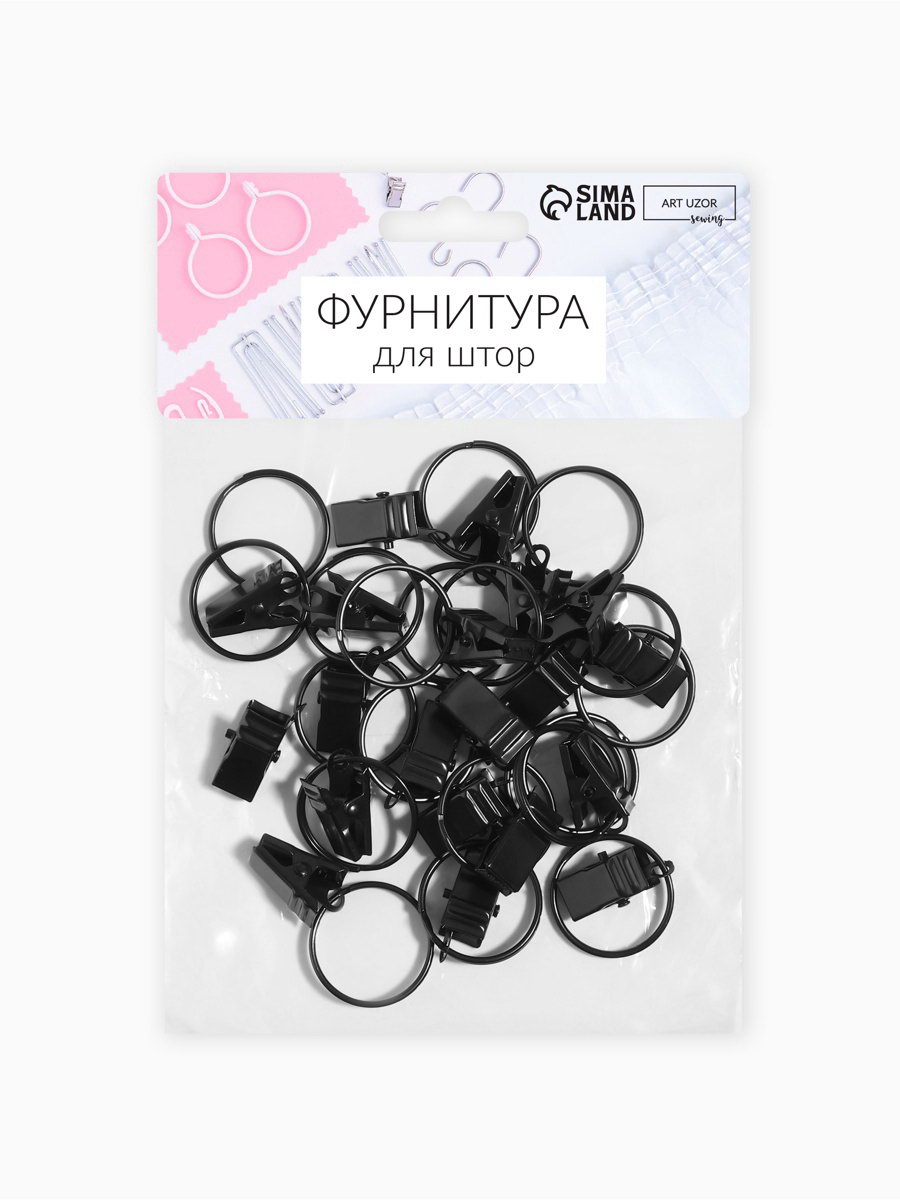Кольцо для карниза, с зажимом, d=22/26 мм, 20 шт., чёрное, 12x15x2 см., Арт Узор, Китай