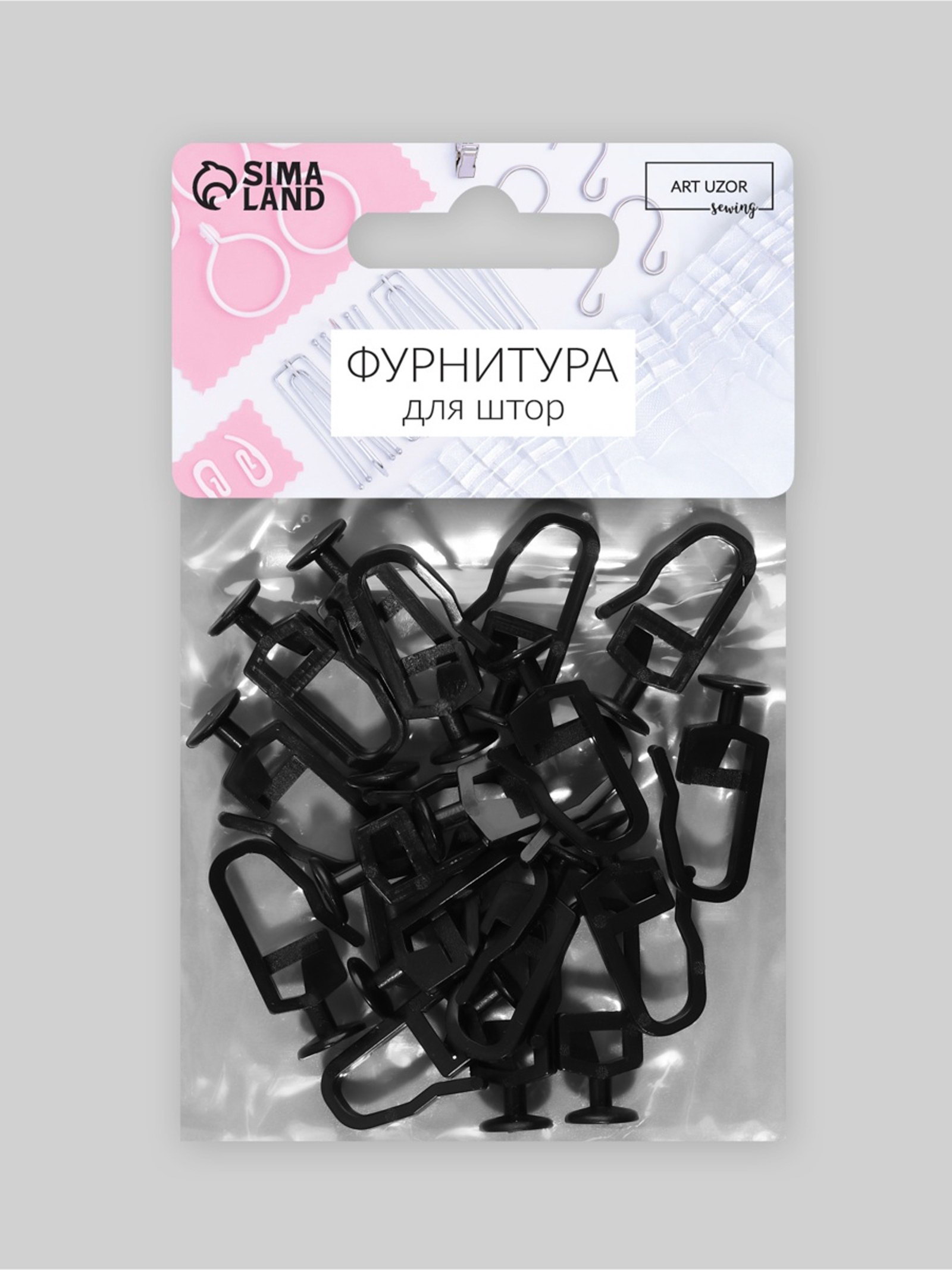 Крючок для штор, гвоздик с замком, 2.5x1.2x0.8 см, 20 шт., чёрный, 7x10x1 см., Арт Узор, Китай