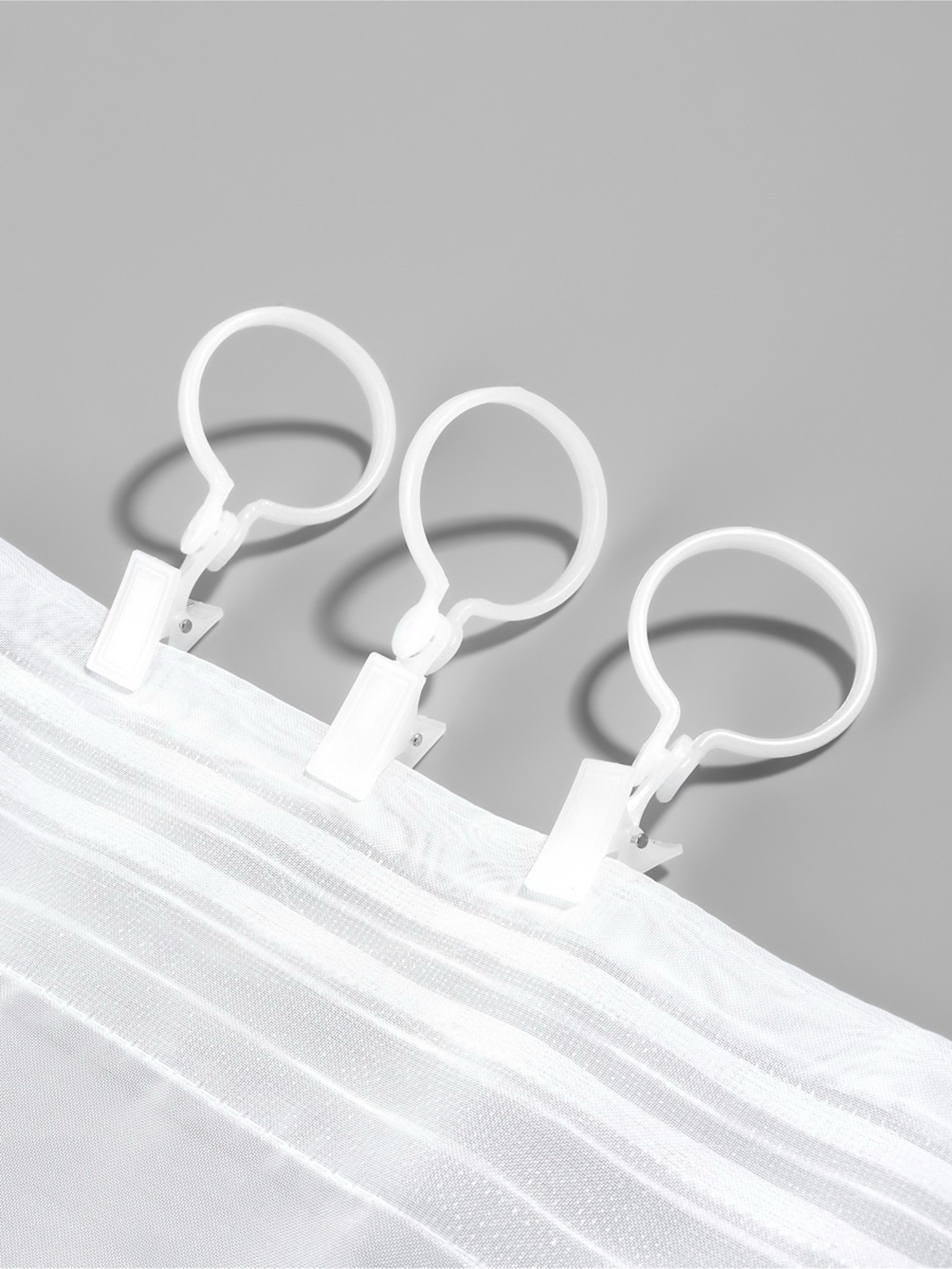 Размер упаковки: 11 x 1.5 x 20 см. Цвет: Белый Вид шторной фурнитуры: Зажим Вид шторной фурнитуры: Зажим tnved: 3925300000 Фиксируйте шторы на карнизе крепко и аккуратно. Зажимные кольца с защёлкой практичный выбор для тех, кто ценит удобство и надёжность в деталях. Белый цвет сочетается с любыми стенами и текстилем, а прочная конструкция из металла и пластика выдерживает плотные ткани. В наборе 12 штук достаточно для полного оформления нескольких окон. Особенности
