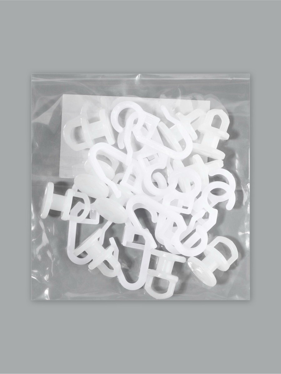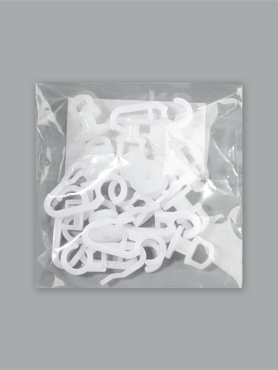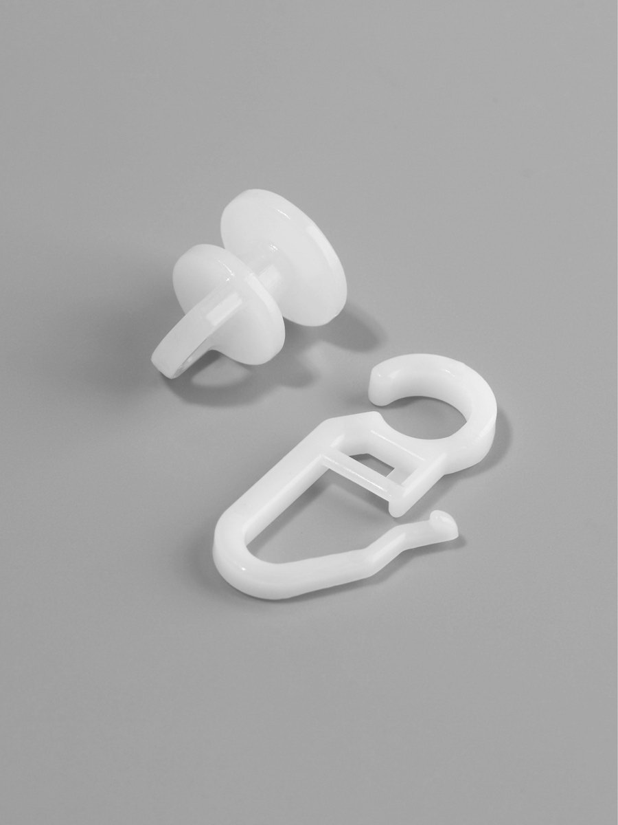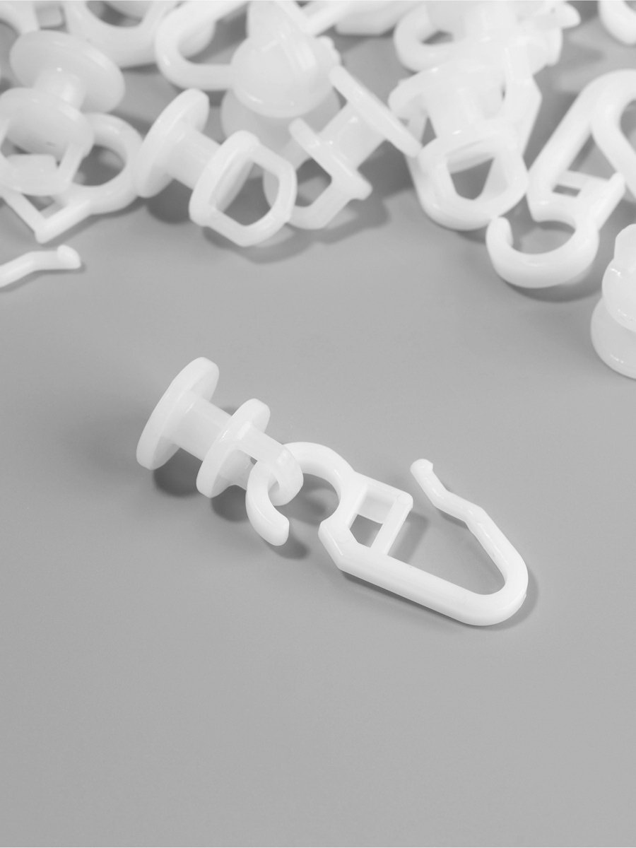Набор для штор: бегунок 10 шт., крючки 10 шт., белый, Китай