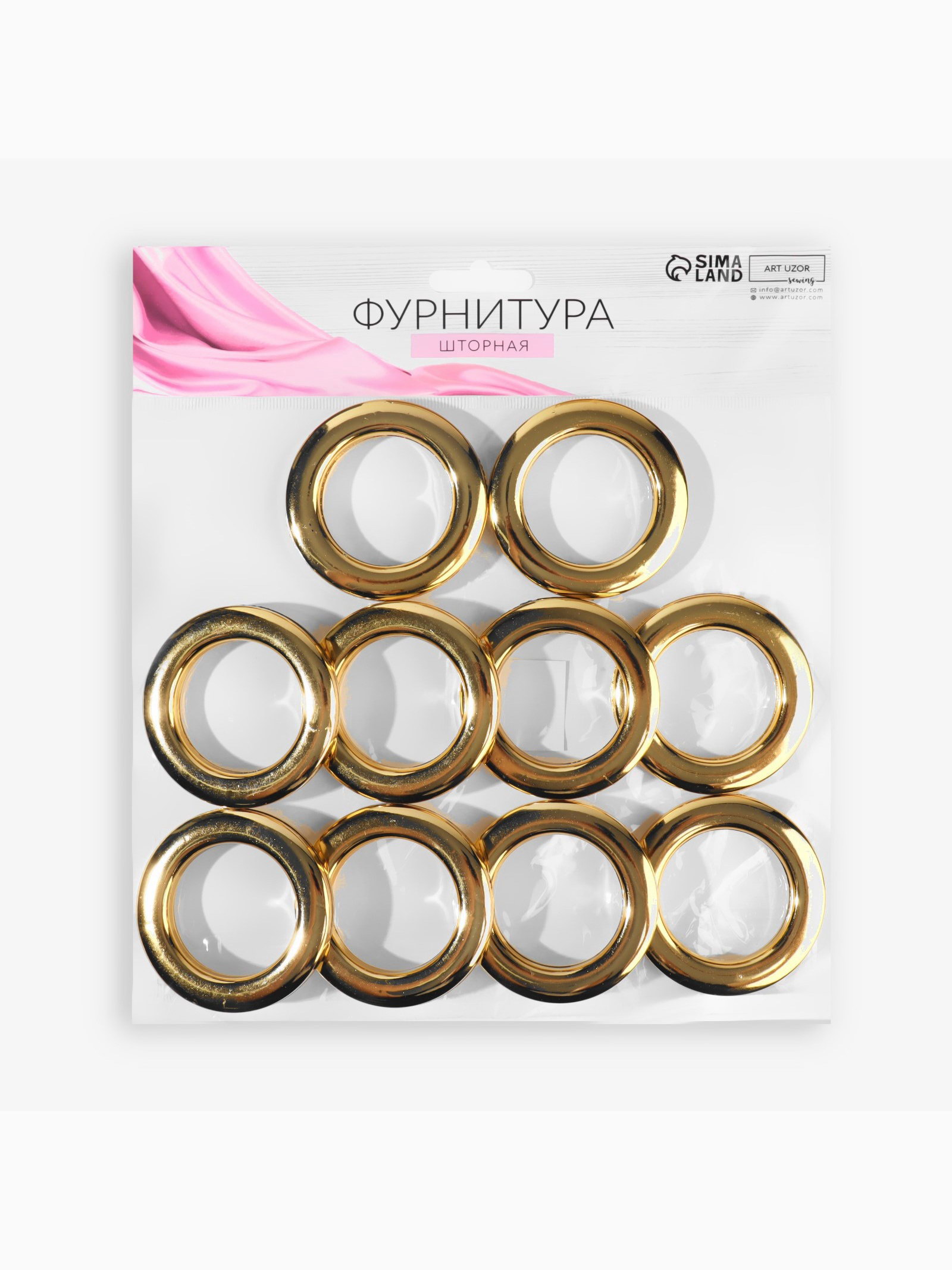 Люверсы для штор, d=4.3/6.5 см, 10 шт., цвет золотой, 12x25x3.5 см., Арт Узор, Китай