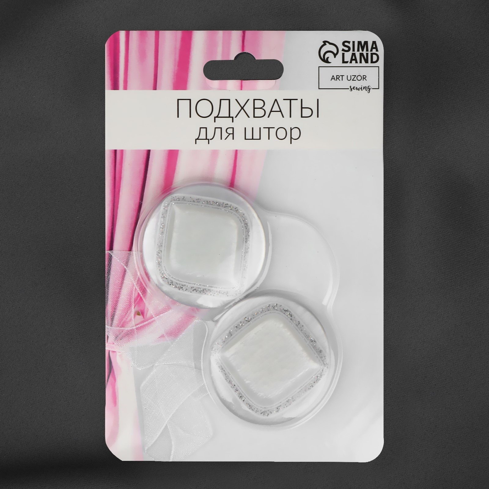 Подхват для штор "Ромб блестящий", 4x4 см, белый, 9.5x14x2.5 см., Арт Узор, Китай