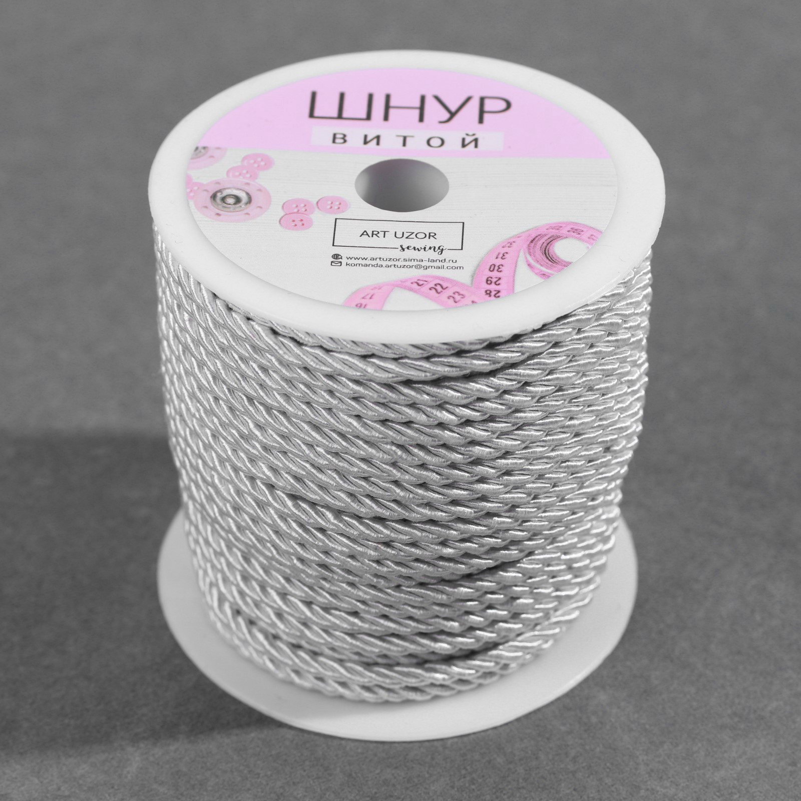 Шнур витой, d=3 мм, 25+-1 м, цвет серебряный, 30х30х6 см., Арт Узор, Китай