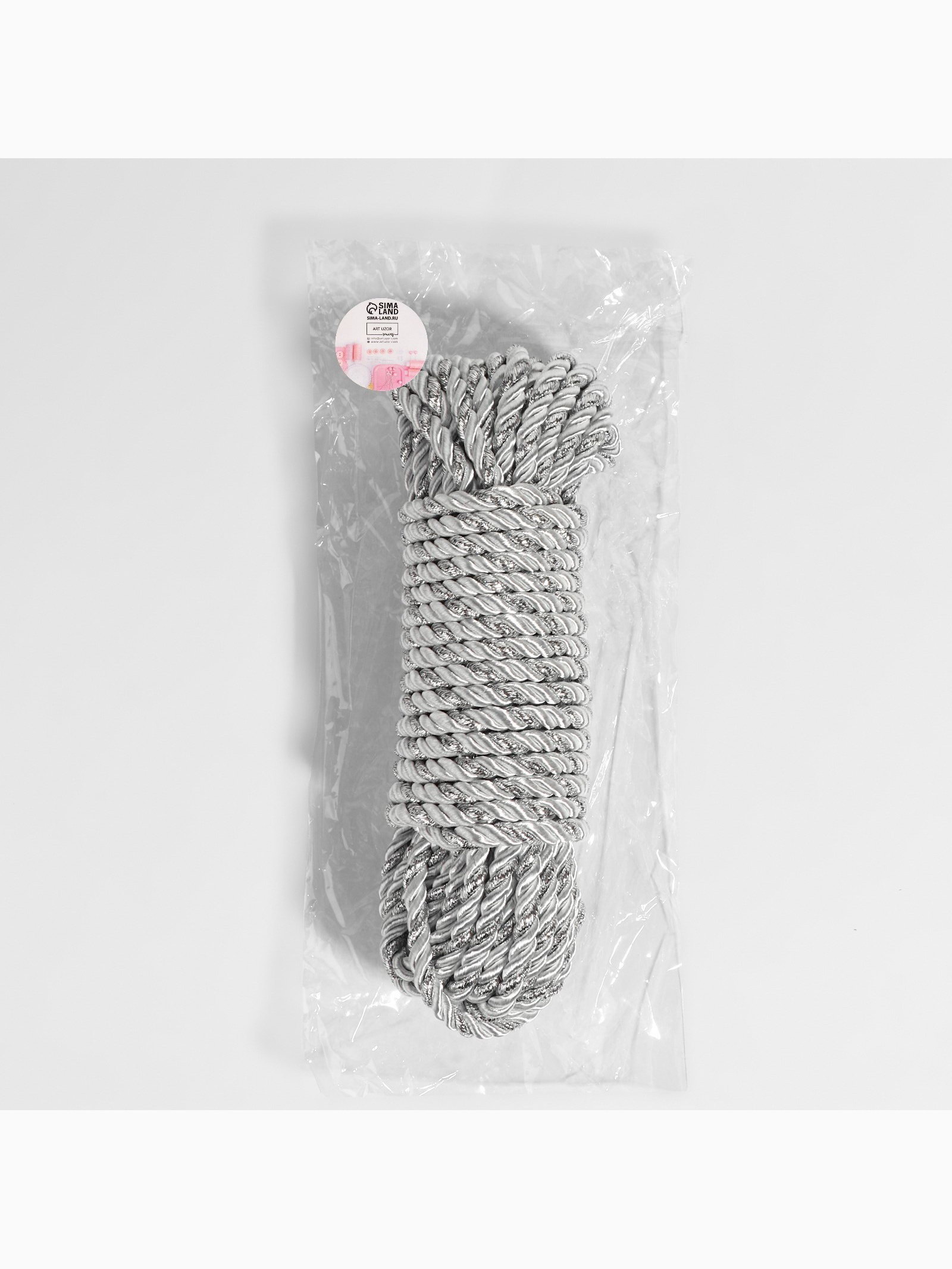 Шнур витой, d=5 мм, 10+-1 м, цвет серебряный, 50х50х3 см., Арт Узор, Китай