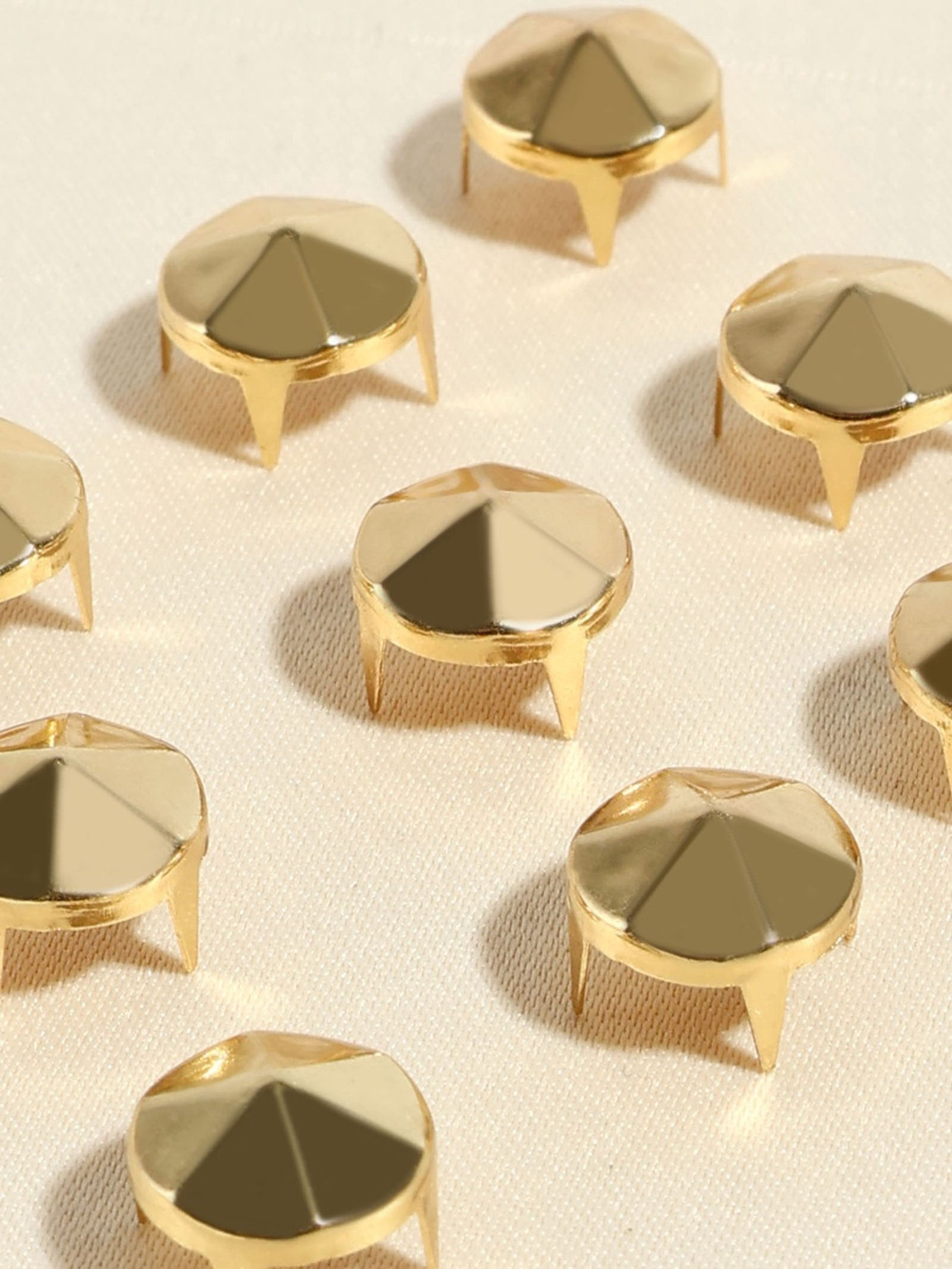 Размер упаковки: 7 x 1 x 11 см. Размер упаковки: 7 x 1 x 11 см. tnved: 8308900000 Вид: Элемент на прокол Цвет: Золотистый Набор: Да В наборе, шт.: 50 Крепление: На прокол Вид декора: Декоративные украшения Золотые декоративные конусы диаметром 10 мм с четырьмя креплениями станут идеальным решением для создания стильных акцентов в дизайне одежды, аксессуаров или предметов интерьера. Этот набор из 50 элементов позволяет воплотить множество идей, сохраняя безупречный внешний вид и долговечность. Особенности