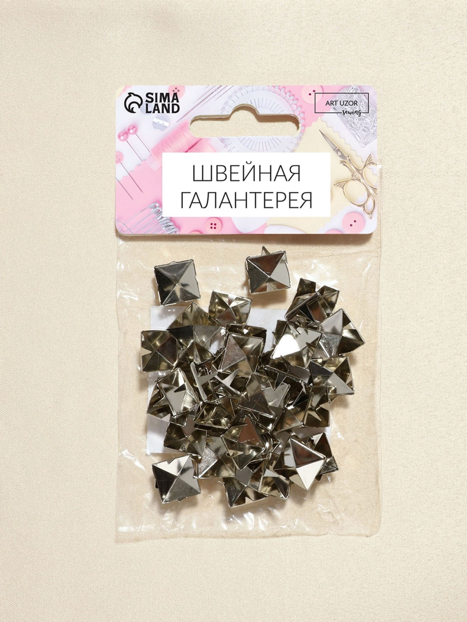 Хольнитен "Пирамида", 11 x 11 мм, 4 крепления, 50 шт, цвет серебряный, 110х110х1 см., Арт Узор, Китай